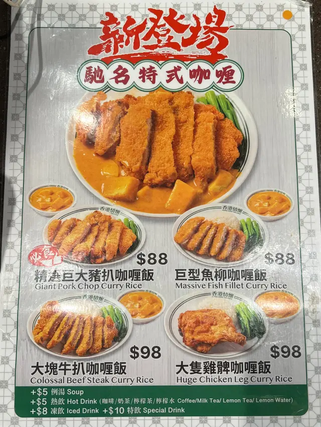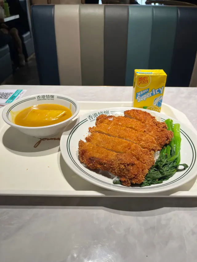 巨大有份量的足料咖喱飯 Clareylee等级42025-09-04132 浏览 关注 朋友從台灣來香港工作特別鍾情港式味道佢每次嚟尖沙咀都必嚟呢間餐廳💥最近有新登場餐牌 「馳名特式咖喱」四種選擇都好吸引✨大隻雞髀咖哩飯雞髀炸得金黃肉汁豐富.嫩滑啖啖肉.果然真係巨大隻咖哩汁味道濃郁. 淋上米飯之中啖啖充滿咖哩味. 超滿足✨蔥油豬扒煎蛋飯豬扒大塊厚肉 + 兩大片煎蛋配上蔥油味道真係好夾✨焗肉醬意粉肉醬同意粉比例恰好味道濃郁超好味✨奶茶涼粉冰茶底香濃.入口順滑加入粒粒涼粉.令口感更豐富整體食物質數同服務都有水準…查看更多+ 8以上食记乃用户个人意见 , 并不代表OpenRice之观点。赞好分享巨大有份量的足料咖喱飯 香港情懷 https://s.openrice.com/QrLT0n41U00检举 张贴 评分5味道5环境5服务5卫生5抵食用餐日期2025-09-04用餐途径堂食用餐时段午餐