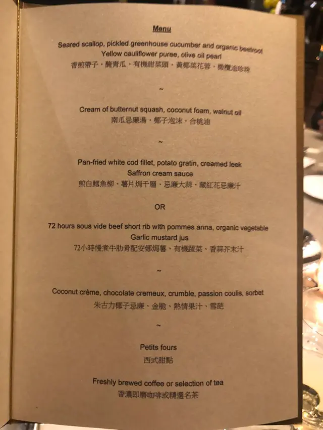 甜品麻麻地 比想像中請睇,其實冇咁好 因為甜品同湯都普通,雞嘅話直程係失望牛嘅話就好味,但係係佢應有嘅標準 因為慢煮正常都係呢個效果薯蓉好滑服務質素爭少少,雖然好有禮貌,但係睇得出佢哋只係part-time未有好好嘅訓練 動作比較慢同埋呆滯 環境非常好…查看更多