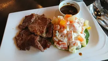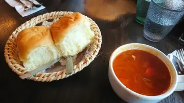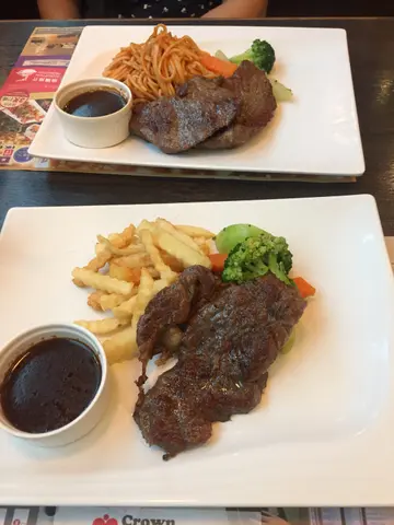 今日放假去食午餐 叫左两个A餐连餐汤热饮餐包餐包微暖 牛油打开发现已溶牛柳配意粉味道ok牛柳配薯菜份量少 味道ok但饮品中晒伏一杯热好立克 点解饮到洗洁精定清洁剂味饮左三份一就无饮而个罗宋汤饮到只系辣椒油 难饮到饮左两啖都饮唔落见到隔离枱先生原本黎左三碗饮左少少都即刻换返晒中汤