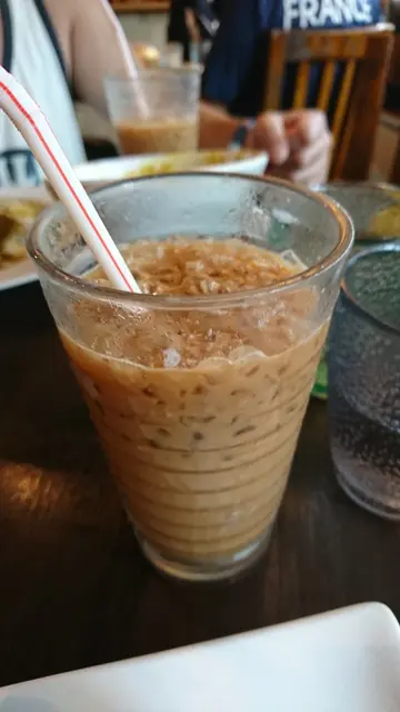 呢度下午茶餐至6点。5点几去到。啱晒我。轻食下午茶餐或重手点,当埋晚餐的选择也有。我就梗系食埋当作晚餐啦。我就食呢个 蒜蓉牛仔柳意粉$43。朋友就食沙嗲牛肉公仔面+香脆奶油猪仔包(半个)$34。要赞呢个沙嗲汤。并没有「水宁宁」。更要赞那脆猪。真的坚脆。杯奶茶还可以。