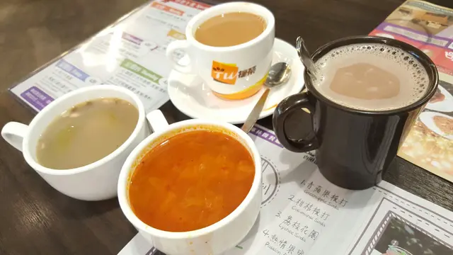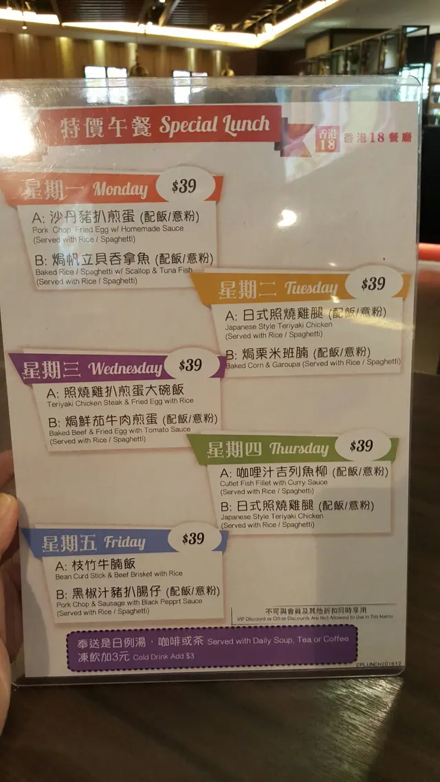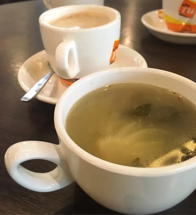 今日放假去食午餐 叫左兩個A餐連餐湯熱飲餐包餐包微暖 牛油打開發現已溶牛柳配意粉味道ok牛柳配薯菜份量少 味道ok但飲品中晒伏一杯熱好立克 點解飲到洗潔精定清潔劑味飲左三份一就無飲而個羅宋湯飲到只係辣椒油 難飲到飲左兩啖都飲唔落見到隔離枱先生原本黎左三碗飲左少少都即刻換返晒中湯