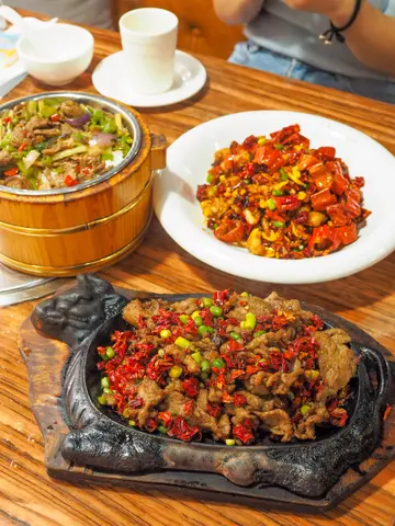 之前经常嚟黄埔食川菜,原来都有一间食湘菜,所以揾日下午嚟试下。餐厅系快餐店格局,当时餐厅都有好多枱客,但唔知点解半间都无开灯,好环保...我哋拣近门口窗边位置,所以无开灯都好光猛。等咗一阵先有店员出嚟落单,我估餐厅系无咩人手,好在𠮶日唔赶时间可以慢慢食。我哋点咗一个午餐小炒牛肉木桶饭,辣子鸡同埋孜然牛肉。孜然牛肉系用铁板上,一上枱就好香孜然味,呢阵味闻落好似喺深圳食到嘅味道。牛肉表面好多孜然粉,食落好香孜然味,少少辣,属重口味之选,好适合送饭,而且牛肉份量都好多。辣子鸡同平时食嘅唔同,平时系辣椒多过肉,揾鸡肉食好似寻宝咁。呢间嘅辣子鸡肉唔会太碎,食落好够麻辣