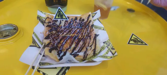 元朗「香蕉仔」泰式香蕉煎餅店真是甜品控的福音!環境雖簡單,卻充滿地道風情。招牌香蕉煎餅 外皮煎得香脆,內層軟糯,夾雜新鮮香蕉,淋上濃郁的朱古力醬和煉奶,甜而不膩,每一口都令人滿足!試過榛子醬口味,香濃醬料與香蕉完美搭配,令人回味無窮。店員態度親切,現點現做,雖然排隊時間稍長,但熱辣辣的煎餅絕對值得一等。晚晚都大排長龍,連九龍人也慕名前來!唯一小建議是營業時間可再延長,讓更多人能品嚐這份幸福滋味。無論是甜品愛好者還是街頭小食迷,香蕉仔都是元朗必試之選!查看更多