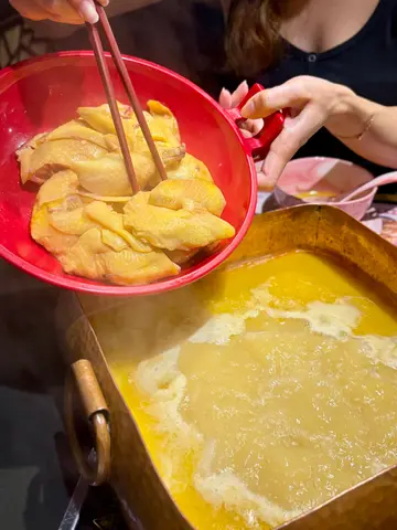 「香香宫煮」是位于尖沙咀的火锅店,环境超有特色,走宫廷风路线,门口就是皇帝龙椅的打卡位,设有大量宫殿卡座,每个卡座都有一个宫名,另设有三间贵宾房,锅具亦参照宫廷古代设计,非常有心思,而且更可以著住宫廷服打卡影相,有得玩有得食👍🏻✨昭阳公主•椰子鸡汤锅必点汤底,用上大量椰子和鲜鸡熬制,未打边炉先要饮汤,味道清甜到不得了,汤底内有半只鲜鸡和大蚬,鸡件大大件十分嫩滑,大蚬新鲜鲜甜✨艾莎公主牛肉宝盒宝盒内有8款牛肉不同部位,分别系本地手切牛三角、牛匙仁、雪花肥牛、牛展、牛黄喉、牛柳粒、牛舌片,每款有着不同嘅口感,非常高质,一次过能够食晒八款牛嘅不同部位,真心推荐牛魔王必食✨ 韭菜猪肉饺饺子每日自家包制,必点韭菜猪肉饺,韭菜味道超香浓,猪肉新鲜弹牙,超好食✨手打蟹子墨鱼丸墨鱼丸口感爽口又弹牙,竟然食到粒粒墨鱼肉,加上蟹籽更加鲜味▪️自家制即炸鱼皮炸鱼皮即点即炸,炸得香脆好香口,好厚身,所以口感非常好,无论就咁食或者放汤一样咁正✨蜂巢冰豆腐|✨油麦菜必点素菜,吸收咗椰子鸡汤之后,味道清新又鲜甜▪️自家制足料竹蔗茅根用一个古代宫廷嘅茶壶装住,竹蔗茅根自家制非常足料,清甜解渴又可以清热气 ,打边炉饮一流…查看更多