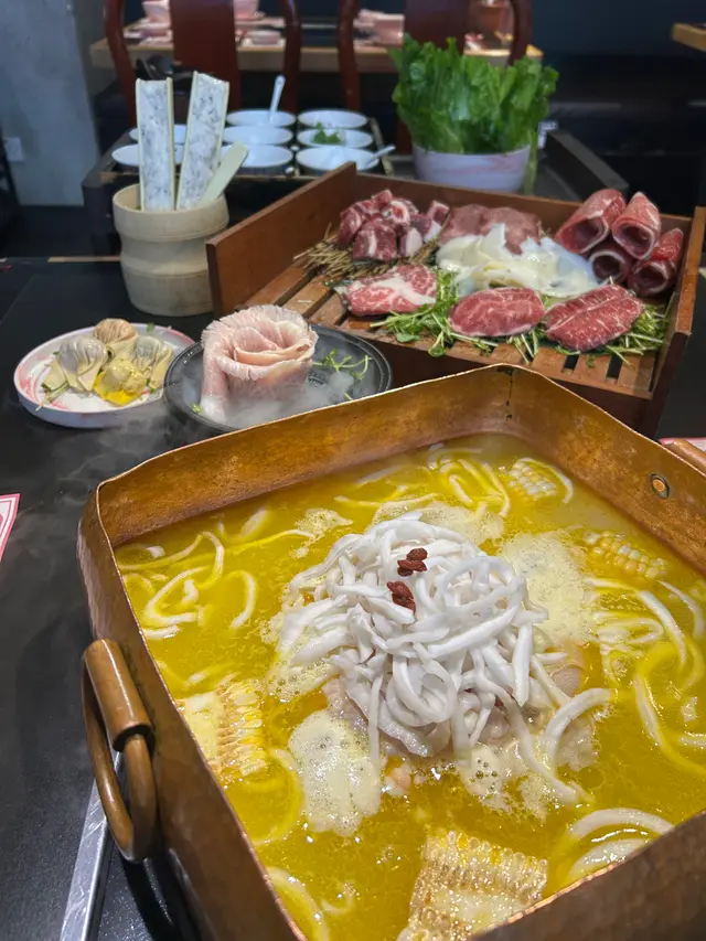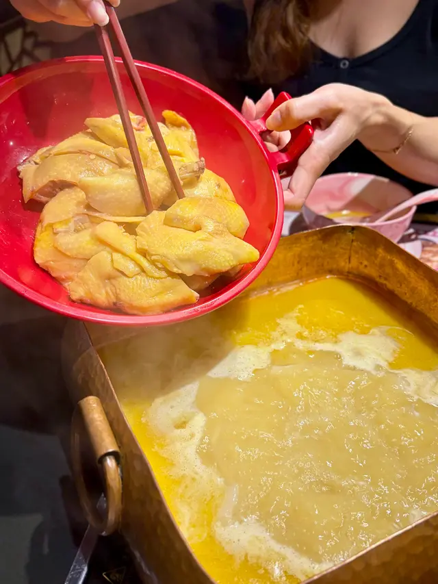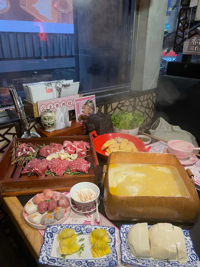 「香香宮煮」是位於尖沙咀的火鍋店,環境超有特色,走宮廷風路線,門口就是皇帝龍椅的打卡位,設有大量宮殿卡座,每個卡座都有一個宮名,另設有三間貴賓房,鍋具亦參照宮廷古代設計,非常有心思,而且更可以著住宮廷服打卡影相,有得玩有得食👍🏻✨昭陽公主•椰子雞湯鍋必點湯底,用上大量椰子和鮮雞熬製,未打邊爐先要飲湯,味道清甜到不得了,湯底內有半隻鮮雞和大蜆,雞件大大件十分嫩滑,大蜆新鮮鮮甜✨艾莎公主牛肉寶盒寶盒內有8款牛肉不同部位,分別係本地手切牛三角、牛匙仁、雪花肥牛、牛展、牛黃喉、牛柳粒、牛舌片,每款有着不同嘅口感,非常高質,一次過能夠食晒八款牛嘅不同部位,真心推薦牛魔王必食✨ 韭菜豬肉餃餃子每日自家包製,必點韭菜豬肉餃,韭菜味道超香濃,豬肉新鮮彈牙,超好食✨手打蟹子墨魚丸墨魚丸口感爽口又彈牙,竟然食到粒粒墨魚肉,加上蟹籽更加鮮味▪️自家製即炸魚皮炸魚皮即點即炸,炸得香脆好香口,好厚身,所以口感非常好,無論就咁食或者放湯一樣咁正✨蜂巢冰豆腐|✨油麥菜必點素菜,吸收咗椰子雞湯之後,味道清新又鮮甜▪️自家製足料竹蔗茅根用一個古代宮廷嘅茶壺裝住,竹蔗茅根自家製非常足料,清甜解渴又可以清熱氣 ,打邊爐飲一流…查看更多