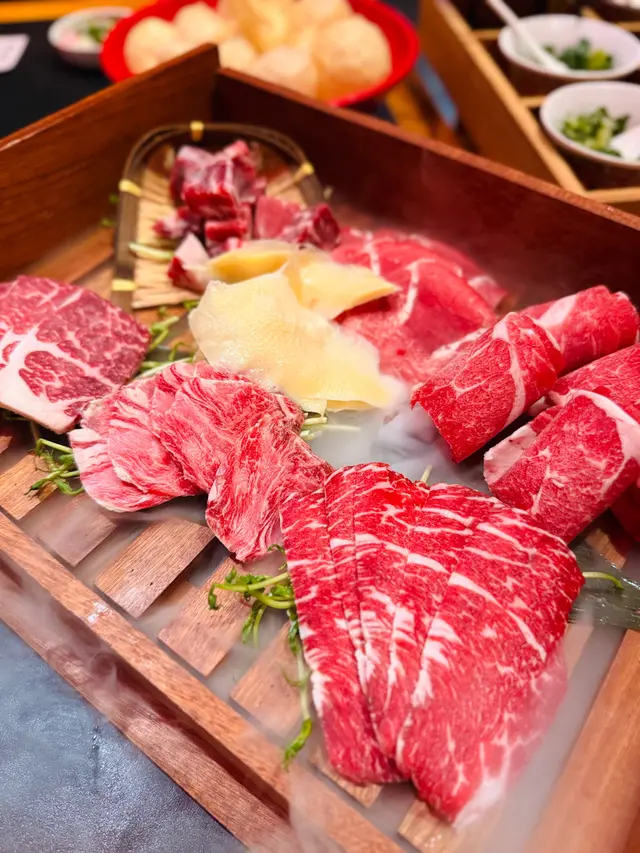 上星期同朋友打邊爐 色呢間宮殿式裝潢設計華麗有氣派,食物水準很高夏日限定清新湯底椰子雞湯蕃茄、酸辣、冬瓜瑤柱湯,感覺清清爽爽食材每日新鮮直送真材實料牛肉拼盤之王有稀有部位,牛肉控朋友大愛日本和牛 油花雪白,入口即溶花雕浸牛肉 渗入酒香,肉嫩多汁券雪花牛肉 細膩油脂,柔滑香濃牛胸爽爽脆彈牙西 牛柳粒——厚切啖啖肉牛王喉稀有部位脆嫩彈牙牛展濃郁牛香牛舌 嚼勁十足手切牛三角人手厚切濃郁牛香另仲有蔬菜併盤、手工餃子等極豐富喔!Read More
