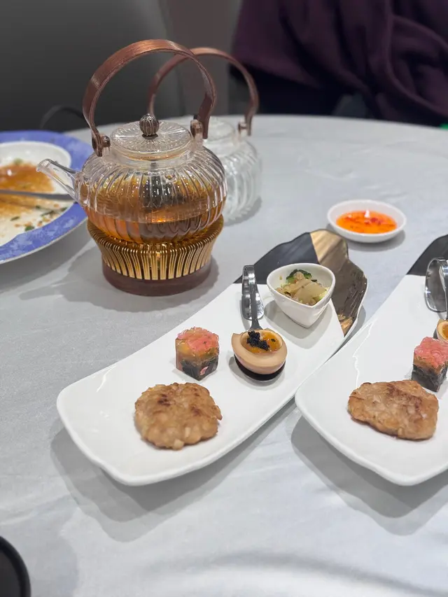 晚上來到銅鑼灣和家人吃晚飯, 找到了這家非常有心思的粵菜酒樓, 環境非常寬敞舒適, 走中高檔的粵菜中菜館路線, 無論食物質素和服務態度, 都非常不錯。<香煎蓮藕餅>蓮藕餅用料十足, 豬肉份量好多, 每一啖都吃到爽脆的蓮藕, 而且外皮煎得酥脆, 肉質實在。<青瓜海蜇頭>青瓜清甜, 海蜇頭入口爽脆, 伴以醬油、麻油、蒜泥等作調味, 清爽美味。<子薑皮蛋凍>外形就像啫喱一樣, 晶瑩通透, 混合着皮蛋與酸薑, 入口又滑又爽, 味道酸甜適中, 配上溏心皮蛋, 感覺非常特別。<黑魚子煙燻流心蛋>煙燻過的溏心蛋, 蛋味香濃, 入口又滑又軟。<紫砂茶壺功夫燉湯>餐廳以紫砂茶壺盛滿雞肉、豬肉、響螺、海底椰等材料, 來煮這個燉湯, 燉湯味道非常清甜, 湯色清澈, 入口每一啖都是精華, 而且味道濃郁,感覺清潤滋補。<金鈎蒜蓉蒸勝瓜>勝瓜面鋪上大量炒香的蒜蓉和蝦乾一起來蒸, 配以醬油來調味, 蝦乾的鮮味非常突出, 而且勝瓜入口清甜多汁, 非常好食。<秘製脆皮燒鵝>燒鵝非常多肉, 外皮烤得微脆鬆化, 而且鵝皮好簿, 肉質鮮嫩多汁, 不會過於肥膩, 個人覺得係必食之選!!~餐廳除了有二人餐, 還有不少不同的優惠套餐, 二人至十二人都有, 而且中午時段又有點心特價優惠, 非常抵食, 值得再去。…查看更多