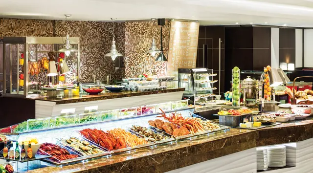 经kkday 买左这𥚃的下午茶自助餐,用了折扣$403/2位。安排坐在卡梳化位,十分阔宽。冻青口吾新鲜有异味,冻虾就几爽口,烤肠、烤鸡槌、炸馒头、猪颈肉,完全吾热,牛肉球好香陈皮味和有马蹄粒吾错,烧卖正正常常,腐皮卷𠮶皮好干好硬,炒肠粉溶溶烂烂,即灼面档配料选择少而且汤底只有一款就系清汤,皮蛋瘦肉粥冇乜料但有味应该落左吾少味精。甜点选择多算系亮点,松饼、焦糖炖旦、鲜忌廉蛋糕、木糠布甸,都几好食。饮品是自助的,西柚汁和杧果汁是室温的口感不佳,冻柠茶茶味不浓。整体来说,坐得舒服,待应勤收碟,但食物就,咸点不行,甜点还可。…查看更多
