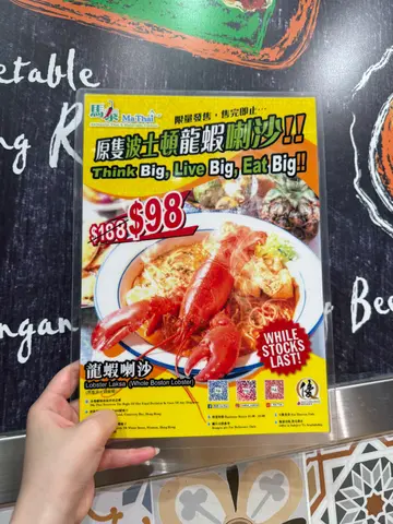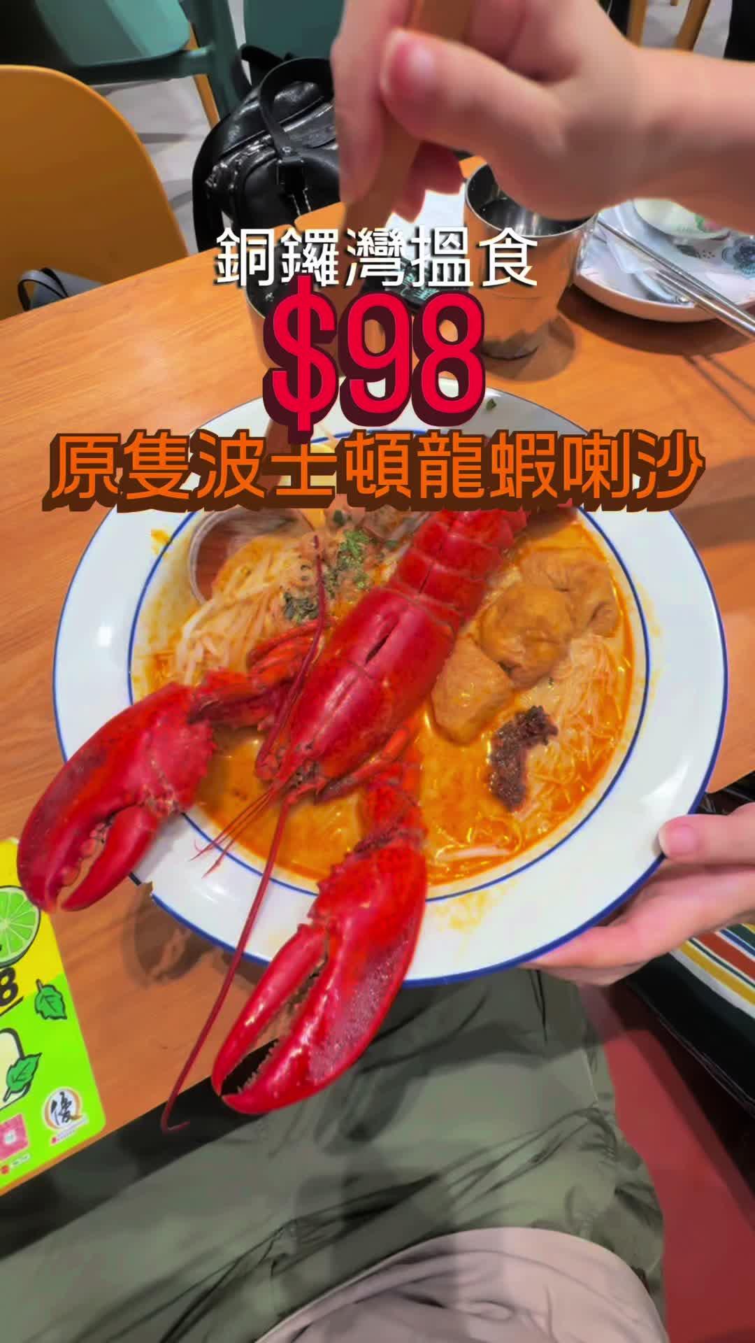 龙虾喇沙大爆发 HKD98,龙虾非常大只,龙虾肉不错,切开有不少龙膏在内。喝一口喇沙汤,鲜味无比,又带点辣,配上掺掺面,完全可以吃到汤底惹味。以优惠价可以享用大大只龙虾和大大碗面,配上喇沙汤底,不能不吃的美食。