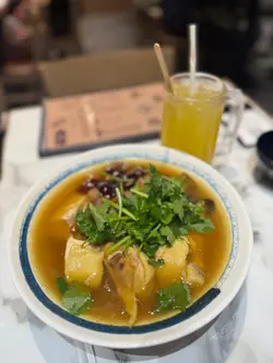 每次黎食都系食药膳汤😝#药膳农场醉鸡新竹米粉 $68可以拣多芫茜,实在系芫荽爱好者福音,红枣味劲香甜,配埋药膳味道即刻觉得个人暖笠笠超级滋补,鸡肉好嫩滑 又大件,性价比几高重点系食过几次水准都冇跌walk ,一直keep住都系咁多人食,午市好晚市又好 钟意食新竹米粉 口感好细滑,同汤好夹每次食啲汤都会俾我饮晒,超满足#柑桔柠檬特饮Order咗少冰少甜,酸酸甜甜,超级解油腻感台湾盐酥鸡 $30盐酥鸡炸到超香脆,入面都仲系嫩滑嘅唔会鞋出面咸香有少少胡椒粉味,简单调味已经好好食Read More