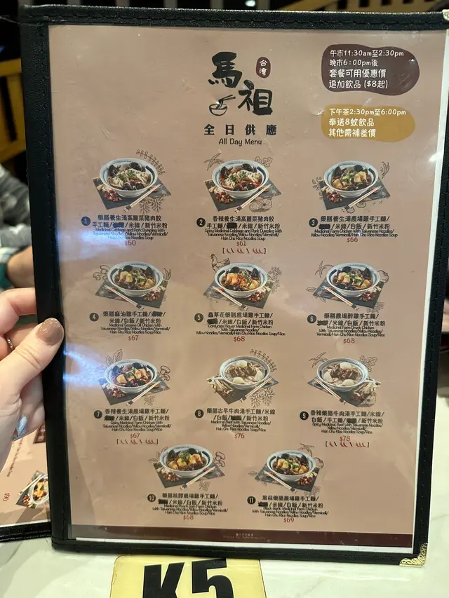 馬祖台灣養生湯麵館 (V Point) (铜锣湾) 网址: https://s.openrice.com/QrLS07rOA00 地址: 香港銅鑼灣登龍街18號V Point地下2號舖 电话: +852 56030500