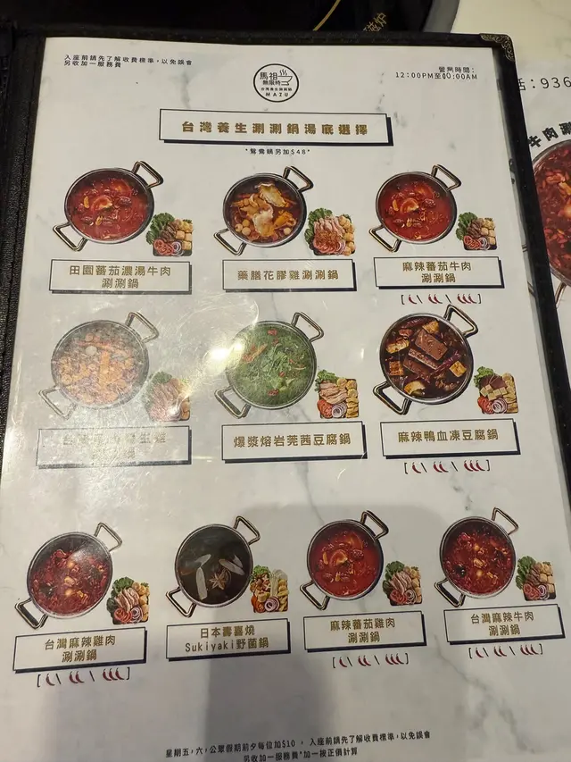一年四季都鍾意打邊爐😬朋友話去「馬祖無限時台灣養生涮涮鍋」😉.⚠️此餐廳收取10%服務費💰.Set D 極上Prime Grade 霜降牛小排套餐(2位)🍽️套餐$974💰.鴛鴦鍋🍲套餐包含💰揀咗爆漿熔岩莞茜豆腐鍋同麻辣蕃茄牛肉涮涮鍋☺️前者豆腐香滑,莞茜清香🌿後者麻辣同蕃茄好Match🌶️🍅兩者都有豆卜、雲耳、粟米🌽.肉類🥩套餐包含💰Prime Grade安格斯牛頸脊脂肪分佈適中🐄肉味濃郁🤤極上Prime Grade霜降牛小排🐂入口油香四溢,口感軟嫩😛.火鍋配料🍢套餐包含💰有墨魚仔🦑帆立貝、海蝦🦐沙白🐚內臟類、蔬菜🥬🥕🎃丸類🍢餃類🥟菇菌🍄🟫.自家製Shake Shake黃金地瓜條🍟套餐包含💰配搭4款調味粉💁🏻♀️有甘酶、蕃茄、香辣、海苔😗地瓜條香甜軟綿🍠加上酸甜甘酶粉好夾😋.甜品🍮套餐包含💰有Movenpick同Haagen-Dazs雪糕🍨 Dreyer's脆筒、雀巢KitKat脆皮雪糕批🍦.飲品🥤套餐包含💰有荳奶🥛茶類飲品🍵啤酒🍺涼茶飲品🎋汽水、梳打水🫧果汁🍇…查看更多