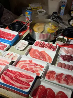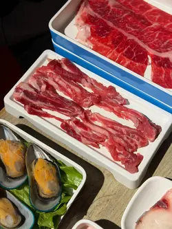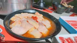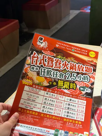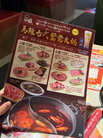 友人岩岩完成咗一个艰难工作,话要慰劳一下自己身心灵,要大饮大食一番。火锅放题咪岩晒啰。晚市任饮任食2.5小时,多D时间食野,仲可以倾到计。分A/B餐,黄金时段B餐都系$228位,今晚就食B餐。未开始火锅,食吓餐前小食如拍青瓜,药膳鸡脚仲有惊喜见到嘅自家制酸斋,酸甜度适中,冻冻地几惹人胃口。B餐肉类主打有无骨牛小排,手切肥牛,仲有鳝片。选好要边个餐,跟住梗系要选汤底,可以要鸳鸯锅。咁就醉鸡配芫茜皮蛋。鸡只另上,目测有半只鸡份量。煮熟就先食咗鸡件先,肉质几滑,不知不觉都食咗几件先烚牛肉。扫二维码仲有其他肉类,如五花肉片,羊肉片,牛舌等等。仲有少少海鲜如沙白,虾,青口,脆肉腩骨。有D特别牛部位系会收费,如牛胸爽 ($20)烚15秒嘅话会爽脆有咬口; 烚3分钟以上嘅话就会变得软糯又不失烟靭,食到油脂香味!喜欢食牛小排,嫩口又多汁,一转色就食得。其他火锅配料就放晒系自助区,都好多选择,每样夹少少都会好饱。睇下呢个阵容,想食嘅无理由唔夹嘅!有牛筋腩,放系个醉鸡锅汤烚,入口有醉鸡汤味,劲!甜品除咗有雪糕雪条,日式蛋糕/奶冻,盒装豆腐花外仲有手作甜品区拎咗牛油面包布丁,格仔饼及法式炖蛋,甜度岩岩好,有惊喜,系有再出去拎多转嘅。佢有自选热茶,多种茶包任配,食到咁饱饮杯热茶解腻都唔错。…查看更多