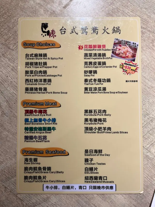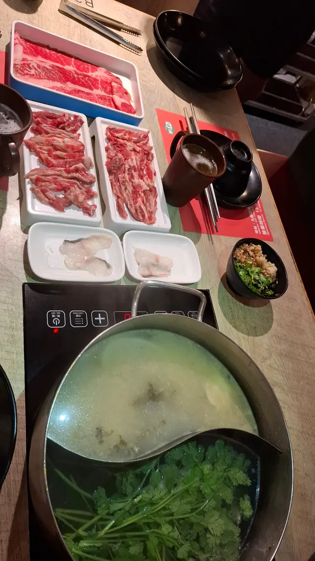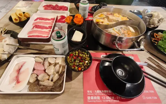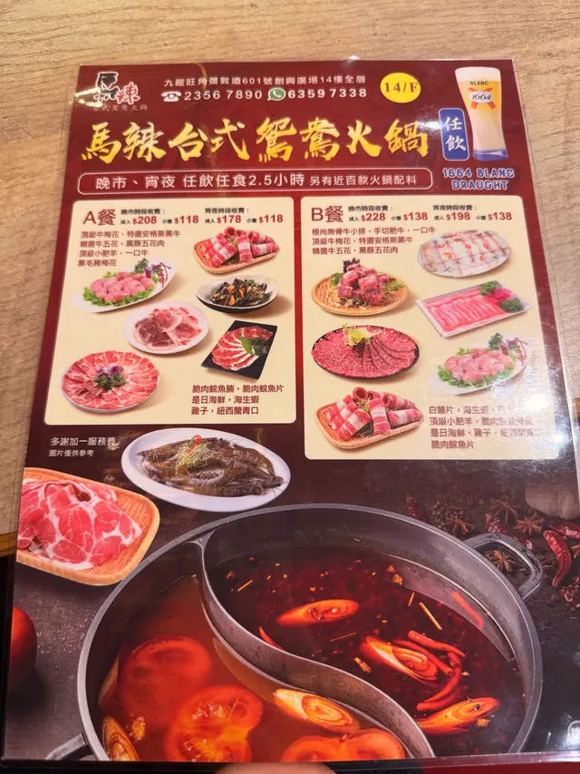 馬辣台式鴛鴦火鍋,位於旺角,人氣度都幾高😎能夠係美食齊集既創興屹立咁多年係有原因既✨今年8周年做優惠,身份證數字有「8」就有折👍🏻2.5小時任飲任食百幾款,自取區多野食到眼花撩亂,點既肉款式都好多,仲有手工甜品區😻1664生啤都有得斟,太豐富太吸引!🫶🏻花雕醉雞鍋🐓煮滾左就好香花雕味,足半隻雞,又鮮又嫩滑,好高質既鮮雞件,加埋濃得離奇既酒香🤩即刻加埋雞子同出面拎既醉雞,滑到爆超好味🤤胡椒豬肚鍋,帶咸鮮味,淥咩都啱,海生蝦,爽身好味,沙白好鮮👍🏻脆鯇又係另一個必食,堅脆彈又濃魚味🤗鮮製既旺菜牛肉餃,足料皮滑,韮菜豬肉餃好濃味好正😌牛魔王駕到👺放題套餐B,牛肉升級有埋極尚無骨牛小排,油脂好靚好味😋手切肥牛,鮮味同牛味都正,一口牛,有咬牙帶肉汁👍🏻其他選擇都好唔錯,安格斯牛肉大大塊,口感好滿足,精選牛五花都好好味,啲牛肉加蛋汁滑一滑咁入口,好爽😻仲有手工甜品區,真即叫即做無預製,好味又貼心🤤真係超超超多選擇既火鍋放題,食材飲品都零次貨,好高質🥺仲支持留港消費有香港收據就有優惠,每晚開到凌晨1點,有咩辦法唔支持!🤞🏻…查看更多