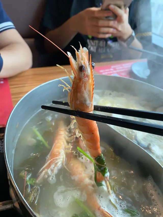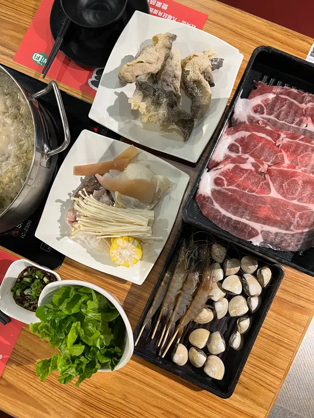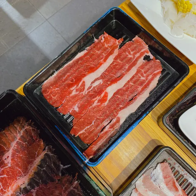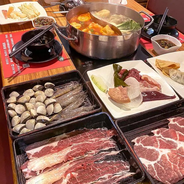 每次黎荃灣行街,食飯時候朋友就會帶我嚟呢幢大廈,今日佢就帶我去食佢最鍾意嘅火鍋。呢間餐廳係食台式火鍋,地方夠晒大,全層都係佢。呢度環境光猛,開揚,乾淨整齊,坐得闊落又舒服。呢度除左牛、豬同海鮮掃QR code點之外,其餘都响出面攞。出面嘢食擺放整齊,唔會立立亂,種類又多,乾淨企理,呢度仲有罐裝或自斟啤酒添。先叫左鴛鴦煲湯底,我哋揀左胡椒豬肚湯鍋同西紅柿洋蔥海皇鍋。胡椒豬肚湯帶少少胡椒微辣,好多酸菜,味道幾好。另外西紅柿其實係蕃茄,呢個湯底甜甜地,味道超濃,配料放呢邊連豉油都唔駛點,夠晒味道。呢度有四款牛揀,美國prime頂級牛梅花, 美國choice無骨牛小排,美國CAB認證安格斯黑牛同美國精選牛五花。各款牛都切得薄薄,朋友就特別鐘意美國CAB認證安格斯黑牛,佢話食落有質感,淥到熟晒一d都唔韌,牛味重。其餘質素都好好,肥瘦均勻,一樣好食。是日海鮮有蝦有蜆,蝦同蜆size普通,但兩款都新鮮,入口帶鮮味,都幾好。食完牛同海鮮,咁就再食其他火鍋配料。朋友隨便攞左d丸,菇同菜之類。呢度d丸幾好食,種類又夠多。魚皮餃外皮夠煙韌,滑牛食落厚實,但軟熟。菜就攞左生菜,新鮮,洗得幾乾淨,入口爽口。呢度甜品種類好多,雪糕雪條同埋糯米糍都係香港製造。海鹽雪糕好靚,係海藍色架,味道鹹鹹地,少少甜,幾得意。荔枝雪條似冰條,甜甜地。另外仲有細細個韓國嘅脆皮雪糕批,一口一啖,剛剛好。除左雪糕,原來仲有香蕉pancake,有驚喜,所以都攞左個返黎食。呢個pancake食落仲係暖暖地,有忌廉,但又唔太甜喎,幾好食。查看更多
