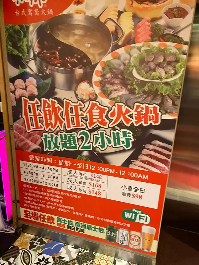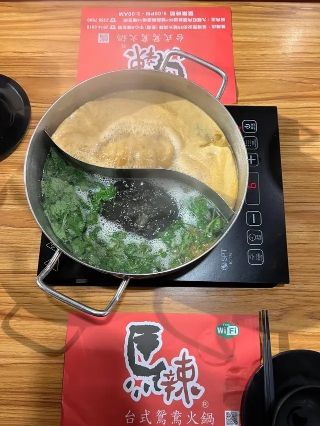 台灣火鍋連鎖店,之前系台灣食過一次,覺得個湯底好正!香港呢間都冇令我失望!環境都算闊落,有好多都係卡位,坐得都算舒服!野食方面,叫左個台式麻辣小辣鍋同胡椒豬肚鍋,特別中意個辣,雖然唔係話好食得辣,但都覺得好正!愈食愈有辣味!佢仲有陣麻辣嘅味!食到個嘴都feel到麻麻地!喱間算係半自助邊爐,scan個QR code可以叫到4款牛同海鮮。個人認為辣鍋配牛真係好夾!尤其係牛小排,食落好重牛味,性價比好高,168任食真係超抵!另外,可以去出面夾啲丸,蔬菜同麵類……選擇都算多,有之前系台灣食嘅蛋餃都有! 野飲都有唔同種類,除左最基本嘅汽水之外,最特別係佢仲有提供花茶包 可以比啲唔飲甜野嘅人飲!下次再去荃灣會再食!!!查看更多
