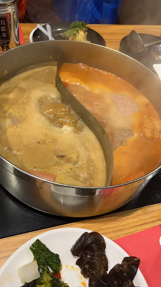 天氣凍返打邊爐就啱晒啦朋友推介我試間馬辣台式鴛鴦火鍋我哋揀咗酸菜白肉鍋同埋馬拉沙嗲鍋餐廳環境幾闊落,坐得舒服肉類海鮮係用手機QR code落單其他丸類蔬菜配料就自己出去拎沙嗲湯底好有驚喜應該係我食過全港最龍尾嘅沙嗲湯配牛肉、牛柏葉同水魷都好夾牛肉選擇都幾多有四款比較推介頂級牛梅花海鮮都唔錯有海生蝦同埋蜆丸類配料就正正常常不過蔬菜選擇就偏少唔計菇同粟米得生菜同小白菜除咗飲品係任飲之外最大驚喜係自助甜品吧有法式焦糖燉蛋同埋朱古力香蕉班戟雪糕就有維記同Dreyer’s芝麻味最為出色好有芝麻香同好滑整體食物水準唔錯CP值幾高,值得一試!查看更多