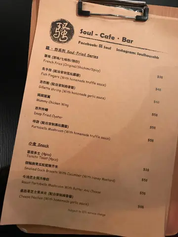 那晚是世界杯决赛,和朋友去了位于号称九龙区兰桂坊的诺士佛台宵夜看球。酒吧叫|骚^Soul,骚不代表发情(或广东人说的发姣),骚字源自于黑人的骚灵音乐。由于酒吧有大荧幕看足球,又是世杯决赛,会员就租用场地作会员活动,大伙也顺便看决赛。我们来到是已经不早,推开门口的白色小门,室内空间约 600-700 呎,只有10多张台,近 40 个座位,那时已坐满大半,灯光柔和但稍嫌昏暗,装潢格调像酒吧和咖啡厅的混合风,墙壁贴了不少旅游明信片,还有很多纸牌游戏,有种 Chilly 的窝居温馨感。那晚由于是世界杯日子,客人多了数倍,餐厅也请了 "外援"。只看两位女生在油烟浓厚的厨房忙个不停,平时很少见她们,应该是老板的 "好朋友",才会抛下身段落场帮忙。但我们的位置靠近厨房,很易闻到油烟味。决赛的两队可算强弱分明。克罗地亚虽然实力稍逊,而且体力储备不足(球员平均年龄更大,并且三战均需打至加时),面对以待劳的法国,不久就落后挨打,但到最后也不放弃,拚命进攻抢球。克罗亚这国家也算悲情,近年内乱战火频仍,近月足总亦被卷入贪污丑闻,但这次小组赛三战全胜,包括击败美斯坐阵的阿根廷,在加时拖垮东道主俄罗斯,又逆转世杯前冠军英格兰,已算奇迹。酒吧全场都锄强扶弱,一面倒支持克罗地亚,法国有人犯规或踢点球就狂嘘,克罗地亚进入禁区就肉紧大叫射门。一路走来,在决赛天时地利人和皆不如人之下,力战法国而败,可说非战之罪,虽败犹荣,也堪值国足愧疚。餐厅主打酒类,食物选择不算多,但每款份量充足,烹饪烘煮细节有心思,而且服务周到,在球赛期间还不断添加任食小食。黑椒炸原味薯条:厚切薯条,全部刚刚炸起,热气扑鼻,口感松脆香口。墨西哥芝士粟米片:在咸咸辣辣粟米片上,淋上芝士烘焗,让浓郁的芝士溶化在粟米片上 (可惜应该是用芝士片,因为没有拉丝效果),上枱时热辣辣, 配上自制肉酱茄粒蒜蓉酱,令粟米片更惹味,又脆而不干,佐酒一流。…查看更多