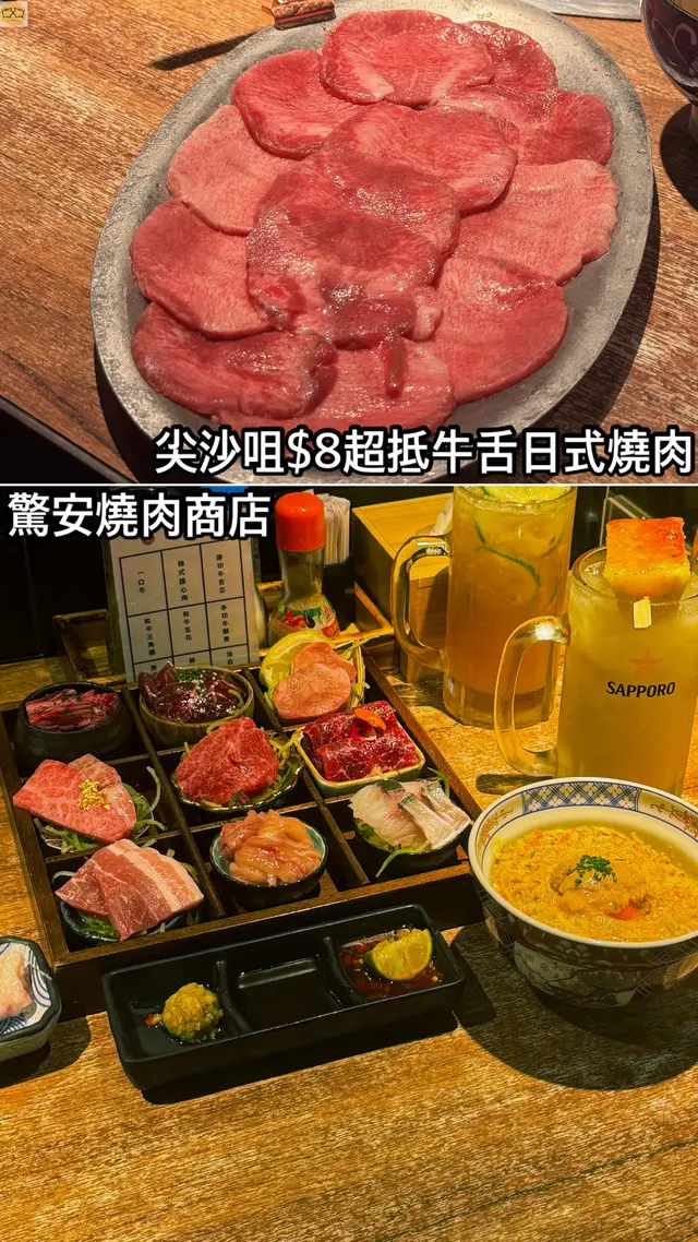 🐷~ 𝐵𝑒𝑒𝑟𝑃𝑖𝑔 𝑅𝑒𝑣𝑖𝑒𝑤 ~🐽【 超抵食牛舌$8一份!! 】#BeerPig · #啤酒豬 · #酒肉朋友💖想睇更多美食 & 日常分享?快啲Follow @Beerpig.Foodie 留意有咩推介啦🌟·—·—·—·—·—·—·—·—·—·—·#🍻🍖 質素:🍱上·九宮格|$388一set包左一共九款食物|韓式護心肉· 厚切牛舌芯· 和牛三角腩· 和牛五花· 手切牛頸脊· 栗子豬五花· 鮮雞爽肉· 活白膳·一口牛|其中兩款仲和牛肉質都好軟嫩~護心肉調味微辣都幾惹味,厚切舌芯好有口感~呢set好高性價比🥩牛舌|$8/份 (每人限點1係份)最最最最抵食~~~做爛市系列😆$8一份真係好平,仲要一份都唔少~抵食!🍛蟹黃海膽月見飯|$168超爆多蟹黃,味道香濃,建議一份兩個人share食😌🥩極黑和牛牛小排|$138另外仲嗌多份和牛牛小排,肉質軟嫩,牛味都幾出,燒到半熟食岩岩好~🍹草莓奶沙冰|$58🍹桃桃沙冰|$48🍻Sapporo 啤酒買一送一兩款沙冰都係口味清新款,唔太甜~燒到熱一熱飲番杯就岩曬😆中意飲啤酒既朋友仔可以叫啤酒,買一送一好抵!!·—·—·—·—·—·—·—·—·—·—·🍻 #驚安燒肉商店 🍖📍尖沙咀金馬倫道48號中國保險大廈3樓C號舖🕵🏼♀️Find others in:#beerpig尖沙咀#beerpig日本菜·—·—·—·—·—·—·—·—·—·—·…查看更多