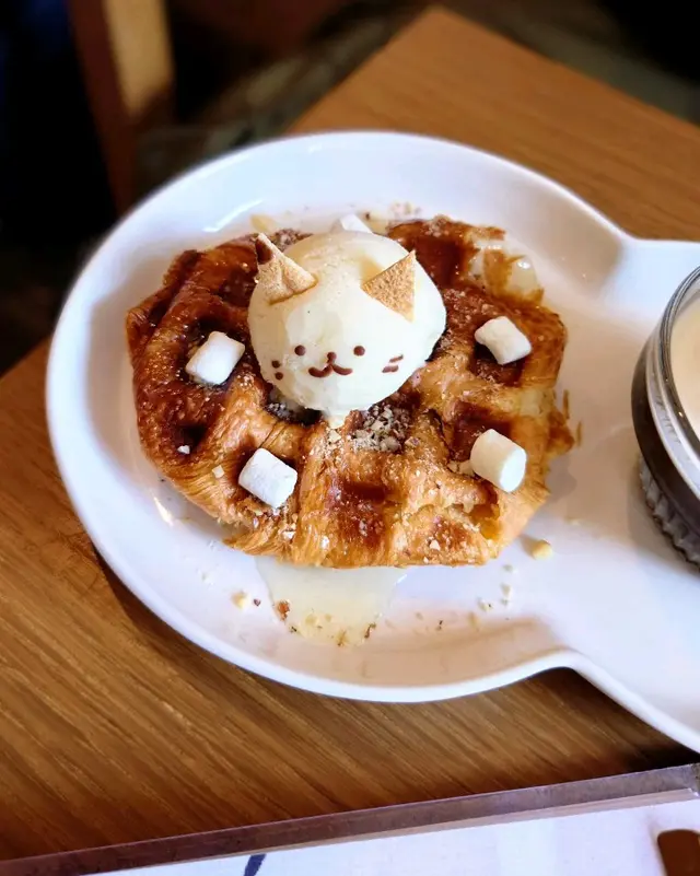 🏡: 環境唔錯,好chill 🌊 坐得都舒服▪️MARSHMALLOW CROFFLE ▪️第一次吃 CROFFLE 這回事其實就是把 CROISSANT 壓扁再烘。本身愛吃 CROISSANT的人就會愛吃脆脆硬硬 佢加了輕量 maple syrup 🍁呢點叻,無搶佐牛角包的香#如果用普通糖漿有機會搶咗個味的面頭的貓貓是雪糕🐱打卡用可能CROFFLE的味太霸道,吃不到預期既呍呢嗱味夾心層有 MOCHI MOCHI但偏埋晒一邊😂小圖的是滿足的最後一口🥰面頭幾粒棉花糖BB係平時燒野食燒開個隻明顯係裝飾,但就放在名字做主角呢度略有哄女生order 之嫌呀▪️HERBAL SAUSAGE & MANTAIKO EGG BREAKFAST WITH TODAY'S BREAD ▪️骨子裡八>朝食;明太子蛋×烤香草腸TOAST一甜—鹹甜:日本蜂蜜🐝好濃啊!有驚喜!鹹:頂頭給你一小嚿牛油🧈完。。。我有預期佢用湯種麵包 /日本麵粉。。但沒有🫠普通的厚麵包而已寫『烤香草腸』來到是『芝士腸』0KAY , 我都中意食芝士腸,但落單時店員無開宗明義🫤玉子,少到就無的蛋味🥚。。為什麼不用日本蛋呢。明太子,唔夠鹹香,打唔均玉子個甜橙橙的裝飾🥔 薯仔沙律,有幾粒無全熟但我覺得HANDMADE的薯仔沙律就是要有點生生,I LIKE 😚…查看更多