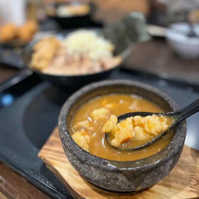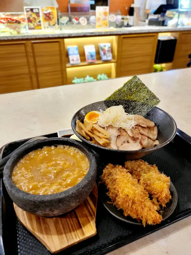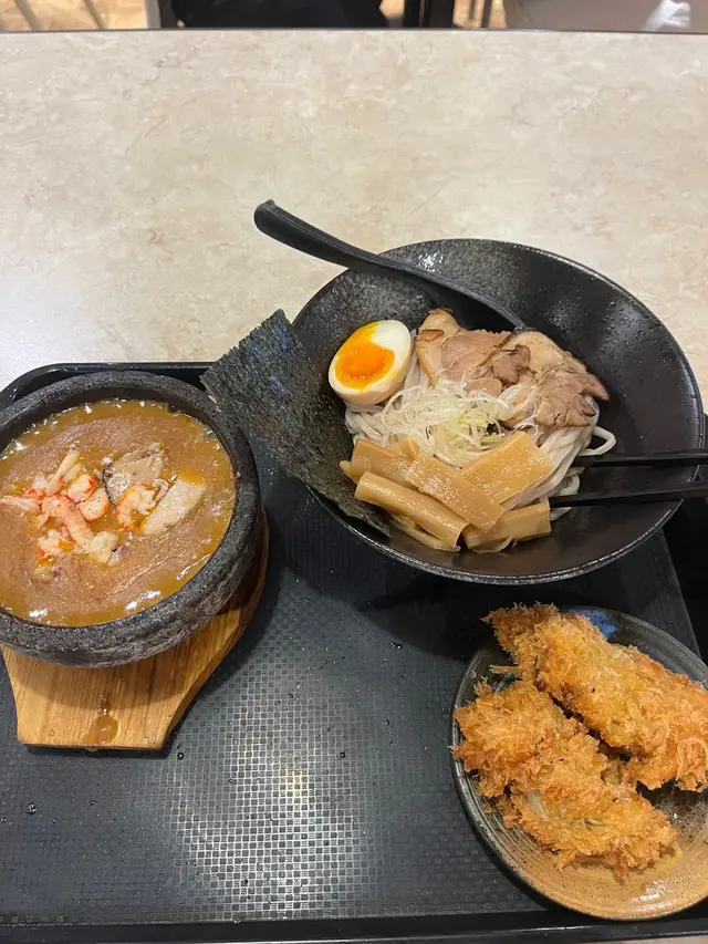 晏晝經過奧海城去咗入面嘅 Food Republic,諗住隨隨便便食個快餐,揀咗一陣都唔係好揀到餐廳,見到有間食沾麵嘅高橋沾麵製作所,諗住特別少少試一試,見佢有個高橋龍蝦沾麵,張相有個龍蝦鉗好似幾吸引,就叫咗一個嚟食,預咗一定會圖文不符,始終幾十蚊唔通真係會有咩龍蝦食咩,所以抱住個隨隨便便嘅心態去食,個汁係石頭鍋上餐,出餐嘅時候滾到出晒煙,其實見到感覺都唔錯,個麵就另上,仲有流心蛋、豚肉同埋其他配料,啲麵我覺得軟硬適中,留心蛋就一般般流心,個沾麵汁其實好似龍蝦湯,個汁杰身咗少少,不過可以接受,雖然冇隻龍蝦鉗俾你,但係入面都有龍蝦肉,老實講龍蝦肉唔算多,但係價錢對比我覺得都合理,個麵都幾掛汁,至於個豚肉稍肥但係都幾腍,肉身未做到焦香效果,不過味道都唔差,特別係以 food court 嚟講,質素算唔錯。…查看更多