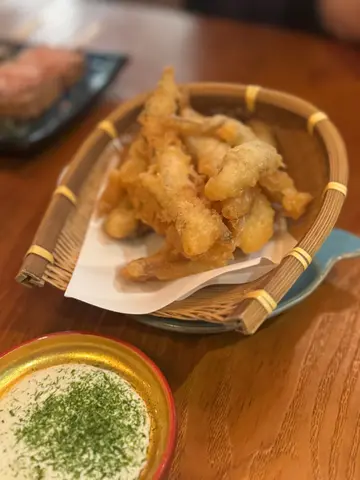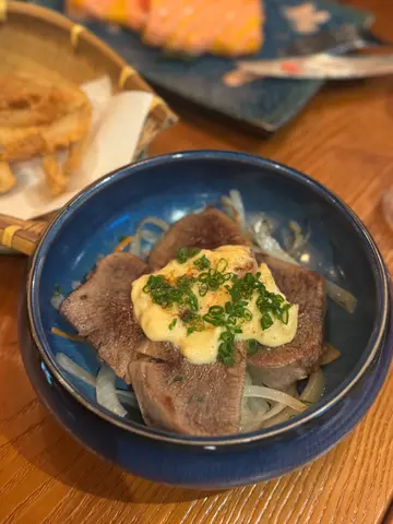 天狗天妇罗 (九肚鱼) 炸得香脆, 鱼肉品质滑溜, 保持水份.佐酒一流.鲣鱼半烤烧配洋葱汁, 高知县名菜, 鲣鱼经烟熏, 口感比较扎实, 鱼味浓郁. 伴上洋葱汁, 吃得出众.接著服务员送上 烧物食材 给我们过目, 真窝心.师傅烧物期间, 大家又来一杯 纯米大吟酿 越后樱 , 入口柔滑醇厚. 烧物烧后即热腾腾送到. 串烧秋葵, 青椒仔, 口感清翠, 有木鱼丝伴食, 味道更香. 烟肉波子青提, 选材非常好, 波子青提清甜加烟肉香, 超级正. 秋葵和牛肉卷, 薄薄的和牛肉, 包上秋葵, 口感无得输.自家制免治鸡肉盖, 圆圆的免治鸡肉盖藏上流心蛋, 吃得美妙又好食. 京都绢豆腐, 外皮烧到卜卜脆, 内里保留豆腐的嫩滑口感, 令人回味. 山楂蓉伴香煎鹅肝吐司, 好像西式小食, 鹅肝煎得香口放在脆卜卜多士上, 加上山楂蓉, 口感有层次, 食得滋味. 慢煮鸭胸伴酱油脆脆 慢煮鸭胸切成一片片, 肉质嫩滑, 夹上酱油脆脆更添加味蕾. 特别试配 京都 匠 山田锦纯米大吟酿酒, 有优雅的吟酿香, 越饮越爱. 兰王高汤玉子烧明太子这个玉子烧好特别, 以兰王蛋加高汤制成. 蛋香浓郁软绵绵, 内包裹了满满明太子, 咸香微辣, 真正滋味. 寿喜烧, 服务员把炉具连 套餐食材, 一一送上, 首先留意有伴上开胃菜 自家制小食: 蟹肉吞拿鱼多士. 芝士免治鸡肉卷, 真令人惊喜. 这是小食迷你版, 吃得香口, 系寿喜烧 的前奏. 鹿儿岛西冷肉眼, 松露味饭, 兰王蛋 , 多种蔬菜: 椎茸 水菜, 甘笋, 大葱, 油扬, 娃娃菜, 金菇, 排列整齐, 鹿儿岛西冷肉眼大大片, 份量足, 云石花纹, 色泽嫩红, 脂肪比较少. 先煮西冷肉眼, 经加热后溶出油脂, 香气上升. 伴菜在锅内用寿喜烧汁同煮, 材料丰盛. 吸入了寿喜烧汁, 好好味. 西冷肉眼混上蛋浆, 特别香滑. 牛肉入口幼软滑松化, 牛味浓, 也把 什菜泮上 松露味饭珍珠米饭, 又暖又可口.食物有质素, 价钱合理, 服务态度好. 清酒任饮配上美食, 真系岩晒我哋. 会再来.…Read More