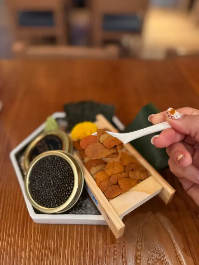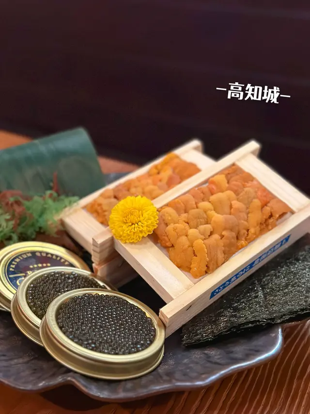 老友果然識飲識食, 他訂了位放工後一齊去飲清酒, 食日本餐, [高知城] 位於銅鑼灣 駱克駅, 門面日式裝修, 好吸引.面積夠大, 有酒吧, 店員招呼不錯, 我們坐下即送上 綠茶.牆上有介紹食品, 及 日本清酒放題兩小時, 可以享用多款清酒, 好正 !大家決定開心飲, 朋友先取 日本北鹿出品的純米吟釀北秋田, 帶濃郁水果香. 餐牌食物選擇多, 有送酒小食, 串燒, 刺身, 壽司, 料理. 點餐無難度, 我們檯上這推廣牌非常搶眼......北海道原板海膽配鱘龍魚子醬. 即落單 !!服務員送上 北海道 原板海膽配鱘龍魚子醬, 令大家即時眼金金, 每人一板 海膽, 金黃色好鮮明, 鱘龍魚子醬 像珍珠般名貴, 圓潤飽滿, 細膩光滑, 質素非常好,把海膽及鱘龍魚子醬 放進紫菜上, 卷起來, 送入口, 好吃得飄飄然, 真回味