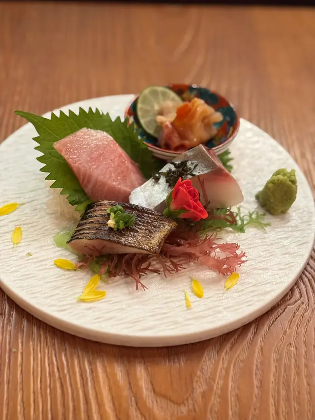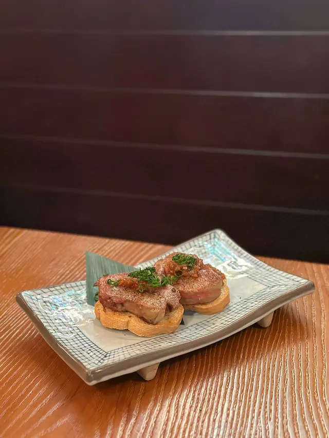 天狗天婦羅 (九肚魚) 炸得香脆, 魚肉品質滑溜, 保持水份.佐酒一流.鰹魚半烤燒配洋蔥汁, 高知縣名菜, 鰹魚經煙燻, 口感比較紮實, 魚味濃郁. 伴上洋蔥汁, 吃得出眾.接著服務員送上 燒物食材 給我們過目, 真窩心.師傅燒物期間, 大家又來一杯 純米大吟釀 越後櫻 , 入口柔滑醇厚. 燒物燒後即熱騰騰送到. 串燒秋葵, 青椒仔, 口感清翠, 有木魚絲伴食, 味道更香. 煙肉波子青提, 選材非常好, 波子青提清甜加煙肉香, 超級正. 秋葵和牛肉卷, 薄薄的和牛肉, 包上秋葵, 口感無得輸.自家製免治雞肉蓋, 圓圓的免治雞肉蓋藏上流心蛋, 吃得美妙又好食. 京都絹豆腐, 外皮燒到卜卜脆, 內裏保留豆腐的嫩滑口感, 令人回味. 山楂蓉伴香煎鵝肝吐司, 好像西式小食, 鵝肝煎得香口放在脆卜卜多士上, 加上山楂蓉, 口感有層次, 食得滋味. 慢煮鴨胸伴醬油脆脆 慢煮鴨胸切成一片片, 肉質嫩滑, 夾上醬油脆脆更添加味蕾. 特別試配 京都 匠 山田錦純米大吟釀酒, 有優雅的吟釀香, 越飲越愛. 蘭王高湯玉子燒明太子這個玉子燒好特別, 以蘭王蛋加高湯製成. 蛋香濃郁軟綿綿, 內包裹了滿滿明太子, 鹹香微辣, 真正滋味. 壽喜燒, 服務員把爐具連 套餐食材, 一一送上, 首先留意有伴上開胃菜 自家製小食: 蟹肉吞拿魚多士. 芝士免治雞肉卷, 真令人驚喜. 這是小食迷你版, 吃得香口, 係壽喜燒 的前奏. 鹿兒島西冷肉眼, 松露味飯, 蘭王蛋 , 多種蔬菜: 椎茸 水菜, 甘筍, 大蔥, 油揚, 娃娃菜, 金菇, 排列整齊, 鹿兒島西冷肉眼大大片, 份量足, 雲石花紋, 色澤嫩紅, 脂肪比較少. 先煮西冷肉眼, 經加熱後溶出油脂, 香氣上升. 伴菜在鍋內用壽喜燒汁同煮, 材料豐盛. 吸入了壽喜燒汁, 好好味. 西冷肉眼混上蛋漿, 特別香滑. 牛肉入口幼軟滑鬆化, 牛味濃, 也把 什菜泮上 松露味飯珍珠米飯, 又暖又可口.食物有質素, 價錢合理, 服務態度好. 清酒任飲配上美食, 真系岩曬我哋. 會再來.…查看更多