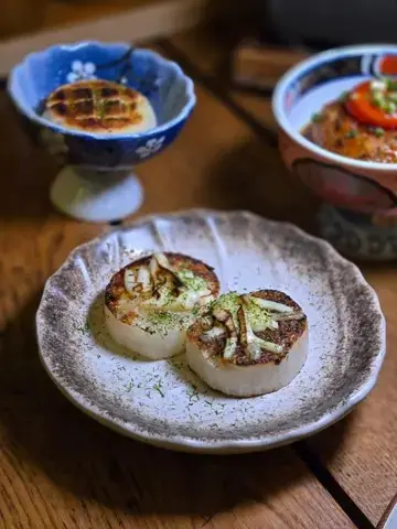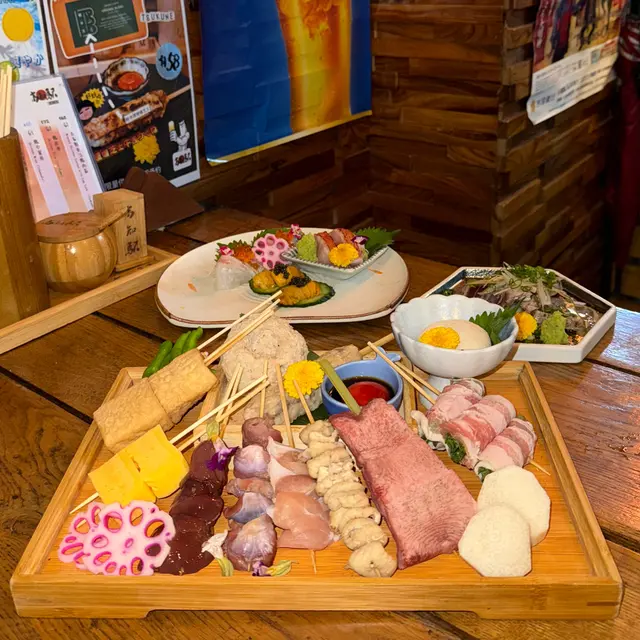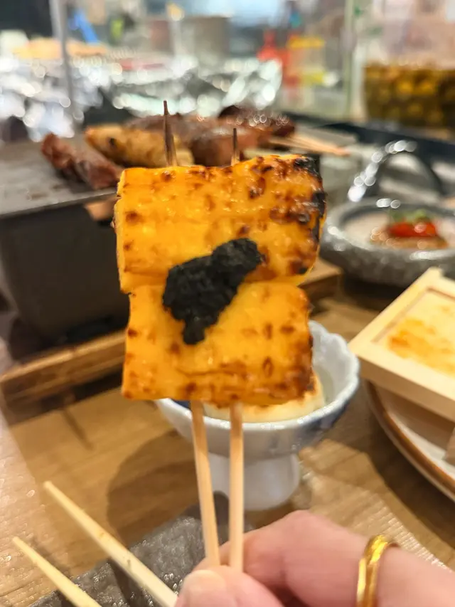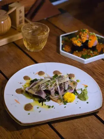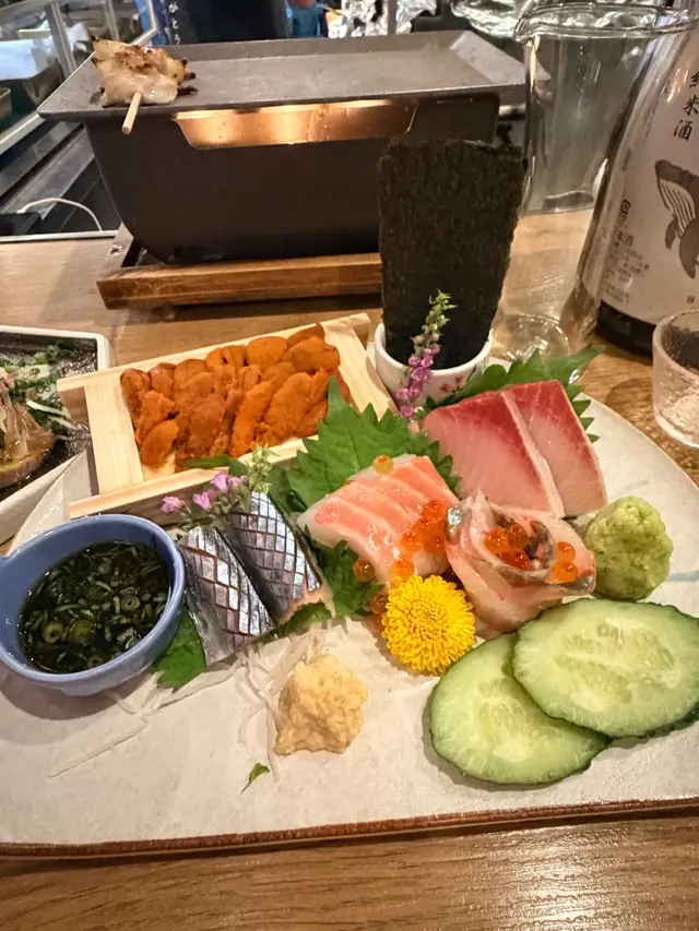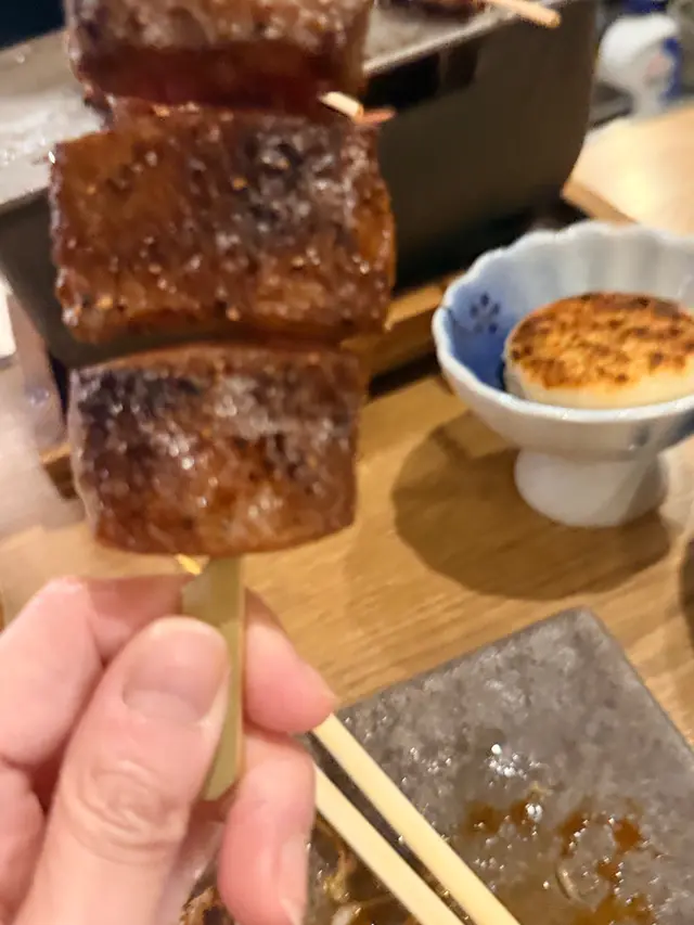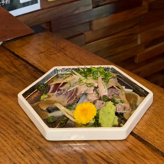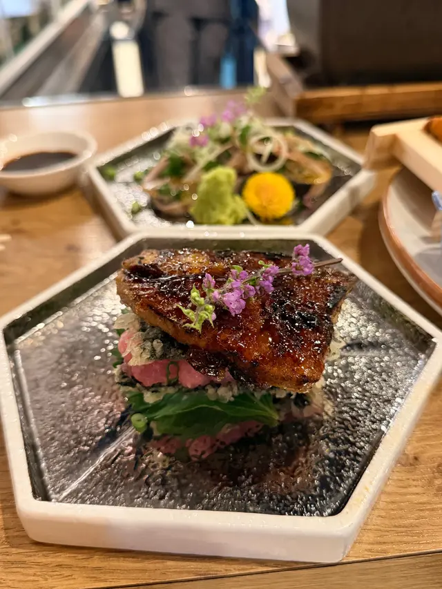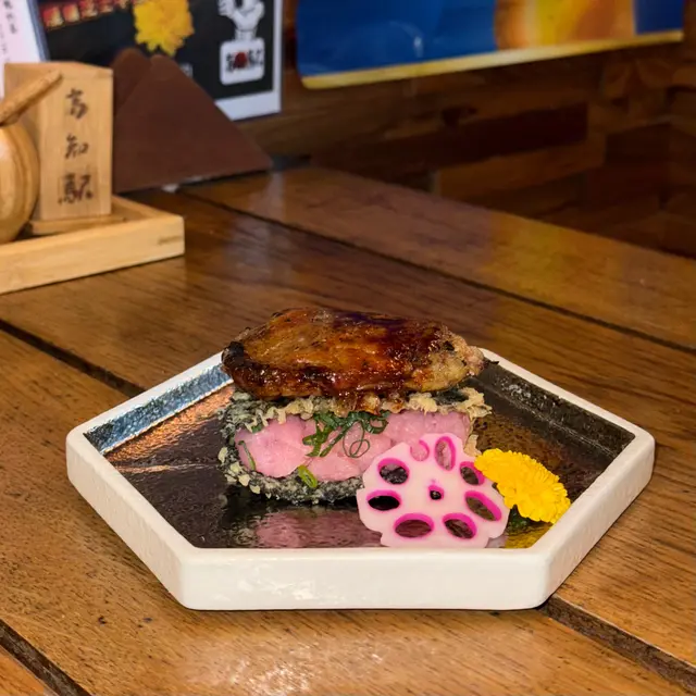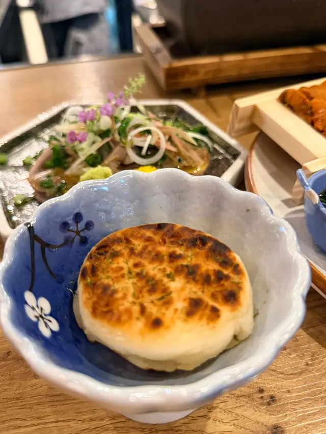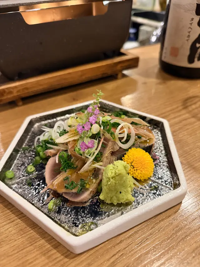 中環高質居酒屋,位於蘭桂坊附近隱世位置,裝潢日式木屋風,專攻炭燒串燒同創意日菜,食材直送日本,適合下班小酌或約會。仲有百幾元sake任飲2小時絕對有質素值回票價。簡單介紹下,每樣點解好食🤤- **鰹魚半敲燒**:新鮮鰹魚輕敲後炭燒,薑蔥醬汁提鮮,開胃解膩,適合當starter暖胃。- **刺身4點(油甘/秋刀魚/真鯛/深海鯖魚)**:新鮮切片刺身組合,油甘肥美、秋刀魚、真鯛清甜、深海鯖魚彈牙,配wasabi生薑,鮮味爆燈🥳- **原板海膽**:直送日本海膽原塊,奶油般滑順鮮甜,包著紫菜吃奢華感滿分💯- **鵝肝拖羅蓉Taco**:一層層鵝肝+肥美拖羅+蓉餡夾天婦羅融合法日風,咬落好酥脆❤️串燒系列-- **和牛舌心串**:和牛舌心烤串,厚切嫩滑多汁,炭火香氣,配鹽或醬,肉質一流👍🏻- **黒松露玉子燒**:蛋香濃郁軟綿入口即化,升級版黑松露好匹配。- **燒明太子翠玉瓜**:瓜脆口而明太子好滑,令人開胃。- **芝士日本長芋燒**:長芋即是淮山。面上烤融芝士,份量大滿足。- **自家製兔治雞肉蓋**:日本蘭王雞蛋🥚顏色繽紛,兔治芝士融雞肉煙燻味濃。- **芝士年糕**:年糕Q彈烤至金黃,煙煙韌韌好好味😍芝士香濃🧀其他串燒有-- **雞皮串/雞腎串/雞肝串/雞頸肉串/青椒仔**:各式烤雞內臟串,皮脆腎鮮肝嫩頸多汁,調味簡單突出原味,雞fans最愛😍呢啲菜係和朋友share style Chill住食好開心😁…查看更多