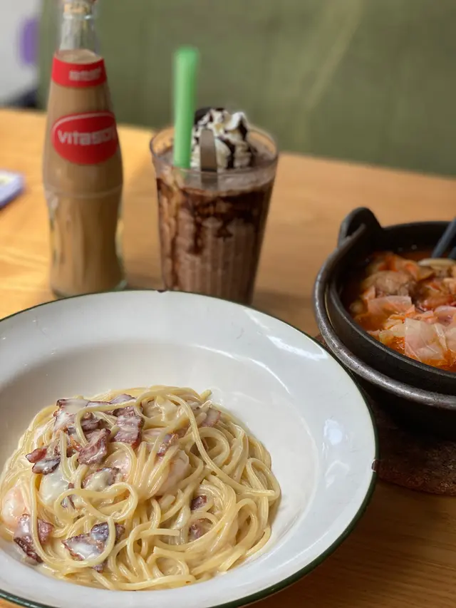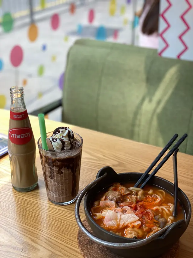 Comfort food之選,蕃茄湯味濃,而且入面有好多蔬菜同菇,夠晒健康。烏冬好滑,豬扒就一般啦。奶茶偏多奶,入口很滑。呢個pancake質感好特別,有啲似蛋糕。唔係空氣感的梳乎厘pancake,但又唔會太實,香蕉配上朱古力醬,味道不錯。這裡的沙嗲牛肉同茶記有少少唔同,偏重花生醬味。吃上去似花生醬撈牛肉,但餡料夠多,而且是烘底,是一份足料的三文治。全日早餐就不過不失,正常發揮,配料尚算豐富。咖啡的拉花也很精美,如果可以轉脫脂奶/植物奶就更好了。…查看更多