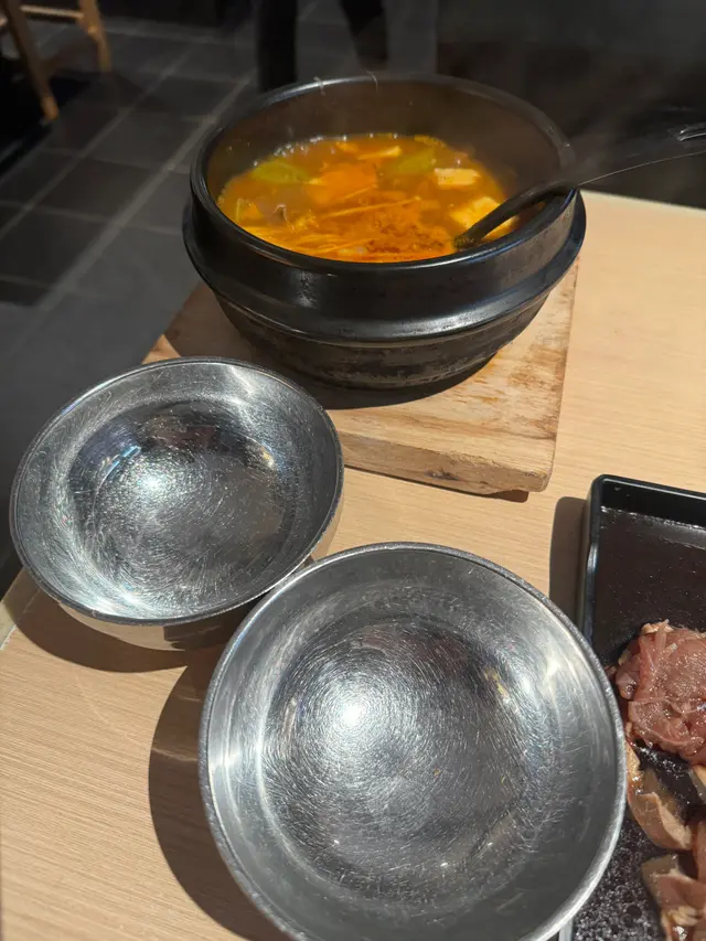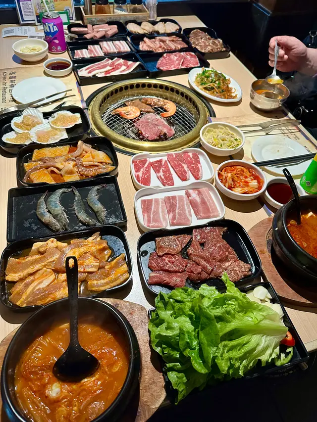 到訪了北角一間樓上🇰🇷韓國餐廳 主打韓國燒肉🔥環境有點傳統韓國宮廷特色✨店員也會定時定後主動幫忙換韓燒網 很貼心🫶🏻肉類選擇非常豐富🥓牛肉、豬肉和羊肉等都有無論是嫩滑多汁的牛肋骨 還是肥而不膩的五花肉每一片肉都經過精心處理 充滿韓式風味😋其中牛肋骨醃得超入味 肉味濃郁 帶薄薄的筋膜 口感彈牙有嚼勁😍另有數款韓式熟食🍲選擇算很多 價錢不貴 套餐內包括白飯、牛骨湯等 份量很充足🤩最後也送上小甜品 是童年回憶的羅拔臣啫喱🥳…查看更多