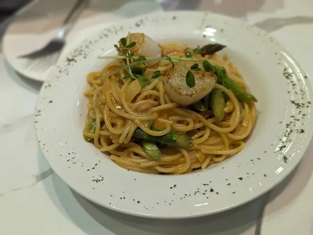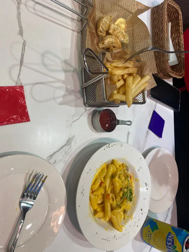 好肚餓,叫咗2個set,有小食又有嘢飲。食個帶子意粉好有驚喜,一擺上枱,就來咗句好靚喎!帶子外脆脆地,但食落,好鮮好嫩,個意粉軟硬適中,反正啱我食。個炸雞,唔記得影相,急急腳拎起就食,外皮都好脆,最西利既係有汁好嫩!仲有個薯角,新鮮炸起,真係又脆又香,識食一定想像到個味,反正,有下次!查看更多