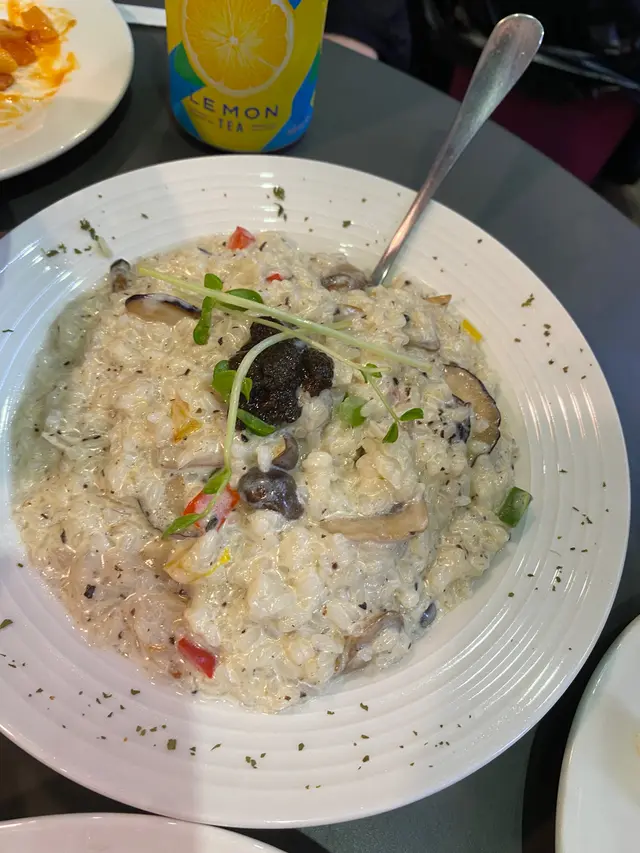 一早就想食呢間,但係冇伴,今日竟然有兩個同事都話去,咁就三人行啦人多就可食多幾款野,於是叫咗黑松露菌意大利飯,蟹籽墨魚汁帶子意粉,同埋辣味炸雞呢個飯我哋三個都一致讚好,好香,汁夠濃,特別係意大利飯,有啲舖頭煮得太生,呢度就好有咬口,但係唔係淋晒我個人好鍾意食墨魚汁意粉,呢個都好好味,但我覺得偏甜咗少少老闆都好搞嘢,話應該要試辣嘅炸雞,但係有預警話俾我哋聽好辣,佢好好咁樣將雞同埋汁分開上,否則真係辣到肚都痛!三個食有兩個投降,我就一句唔該食晒🤣🤣挑戰味蕾就應該要嚟試吓,真係正,食到出晒汗查看更多