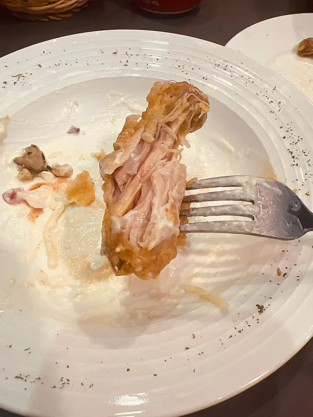 聽聞龍門居有好多好嘢食,不過好多都係外賣店。經過呢間炸雞小店見有位坐就入去試下。店舖唔算好大,得幾張枱。不過我地去嘅時間比較早,所以得一枱有人。我哋揀咗一碟意粉,半隻炸雞,轉埋套餐有湯有飲品,仲有兩款小食添。價錢望落都唔貴,係街坊價😊芝士煙肉帶子忌廉意粉 $58(轉餐+$20)而家五十幾蚊嘅價錢食一碟意粉我真係冇乜太大期望,點知碟意粉一上枱:嘩,好靚😍 睇見個擺盤都覺得好高質,好用心。兩粒帶子煎得金黃,又唔燶,外皮脆脆地,好好食。而且意粉嘅軟硬度適中,個忌廉調配得啱啱好一啲都唔漏。非常驚喜👍香蔥炸雞半隻 $88(轉餐+20)平時多數揀甜辣、芝士或蜜糖呢啲口味,今次就想試下一啲特別啲嘅味,所以揀咗香蔥。炸雞嘅份量都唔少,面頭鋪上滿滿嘅蔥,仲有少少甜酸醬汁。外皮炸得好脆但入面嘅肉仲係好juicy,好滑🤤火腿忌廉湯 (跟餐)有少少洋蔥同火腿,味道正正常常👌辣味薯角係大size版嘅薯角,即叫即炸熱辣辣,又脆又香口😊炸什菌餃子呢款餃子又係炸得好脆,不過炸嘅什菌餃子真係第一次食,個人覺得個配搭一般,什菌可能都係配湯餃會好食啲😂埋單$200,我地2人都差啲食唔哂,性價比超高,絕對可以再encore👍👍🤑性價比:9/10🤤色香味:9/10🐖邪惡度:8.5/10🤗推薦度:9/10查看更多