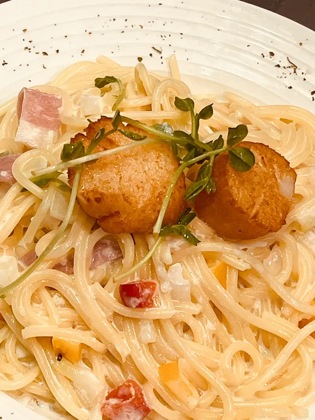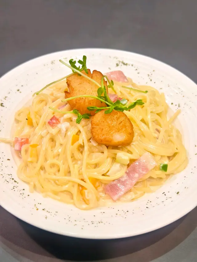 芝士煙肉帶子忌廉意粉