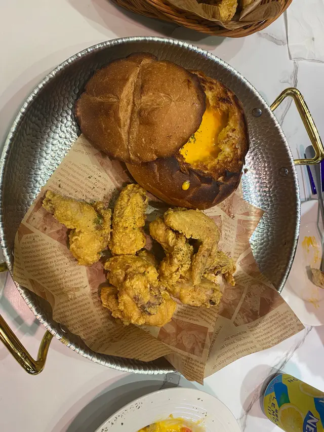今日第一次光臨,叫左白汁蜆肉長通粉,每一粒通粉都充滿汁,好夠味,蜆肉又多,價錢先$55。另外,叫左芝味泡泡炸雞,麵包大大個裝住芝士,雞又新鮮,價錢又不貴,麵包蓋上仲塗滿蒜蓉醬,食完雞又可以食埋包,飽到食唔晒要拎走,值得推薦❤️蜜糖蒜蓉炸雞多汁又嫩滑,雞亦都大大隻店鋪位置寬敞,極度推薦🤤🤤營業時間到晚上十一時,十分適合收工買外賣返屋企享受,難得係屯門搵到唔hea又好食又有heart既炸雞店,誠意推薦大家食🤤查看更多