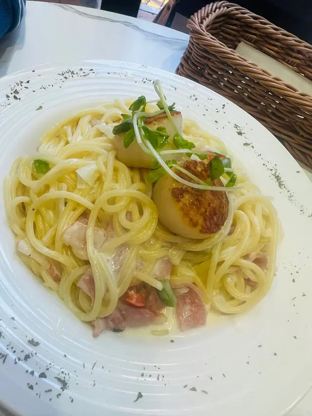 芝士煙肉,帶子忌廉意粉