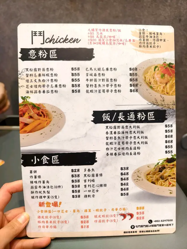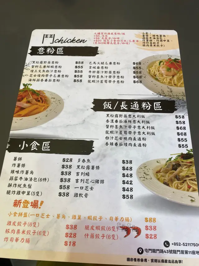 響FB見有人講開,龍門居有間炸雞好抵食~所以就定左屯門美食之旅鋪頭地址唔算難搵;鋪頭唔大入到去睇餐牌,見到選擇都幾多,但因為要去好多場食野,所以是但叫左一個龍蝦汁意粉 同一份炸雞意粉味道足,唔會太淋 個龍蝦味都幾濃 ~好食炸雞都炸得好好,但個調味唔均勻 有位係無味.但炸得好干身 肉汁都算多 整體係好味GE~如果去開龍門居掃場街前 當正餐食 佢係理想選擇~順帶一題,職員服務態度屬於小店質素 唔好祈望太高查看更多