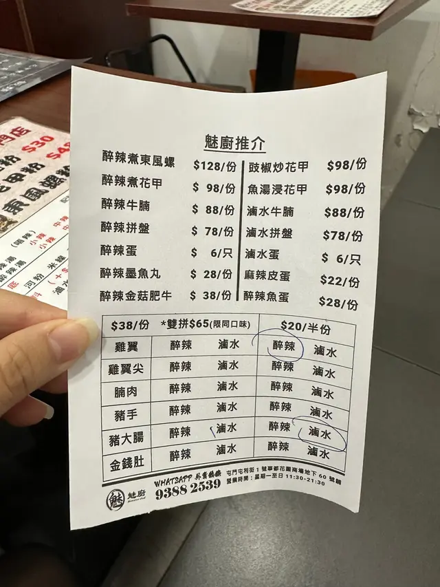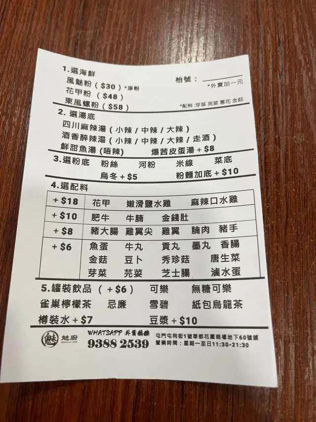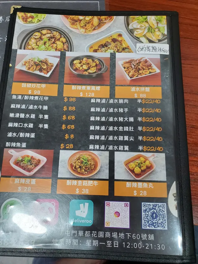 鋪位細細,大概有十多個位,多少有點逼,不過味道還可以。餐牌不算多選擇,有點似車仔麵,由湯底, 辣度,麵,餸,飲品,續樣揀。兩個人揀咗麻辣湯底和醉辣湯底。個人覺得醉辣湯底幾有趣,辣中帶有酒香,不過朋友覺得有啲啲怪,唔適合佢。麻辣湯底唔算好辣,但夠麻,那種麻香是我的最愛。至於餸方面,一碗選了花甲,豬手,金錢肚,另一碗選了花甲,大腸,牛腩,鹵水蛋和口水雞。主打的花甲品質一般,size較小,而且唔夠入味,反而口水雞幾滑。整體不過不失,可以再嚟~…查看更多