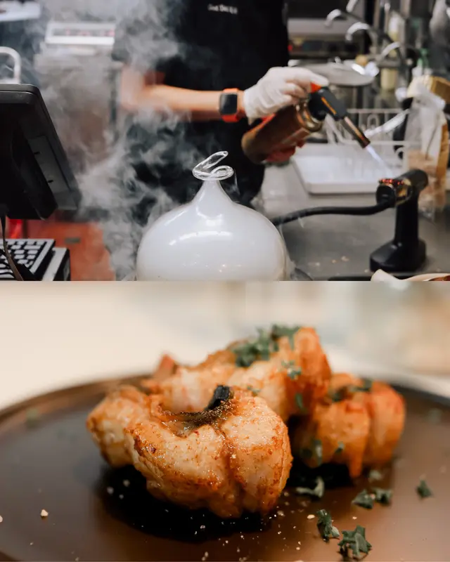 一直聽過呢間生酮餐廳,後尾先知道原來要事先訂位,唔接受walk-in~今次嚟試試佢嘅Keto Omakase,菜式好特別!一嚟有一杯蘋果醋嘅飲品,幾開胃!食物水準非常好,就算唔係生酮都可以嚟試~由於場地好細,只可以容納2-3枱客,相對地師傅同客人嘅溝通交流都會深入啲,密切地關心客人嘅情況~值得一提嘅係最後我哋食到太飽希望打包野食翻去,佢哋準備咗一個好靚嘅金色兜,密封咗咁幫我哋打包,個兜可以直接放上火上面燒/ 焗爐/ 微波爐叮咁樣,仲送埋個保溫袋!睇得出除咗食物係用心製作之外,對客服務都一流👍🏻值得一試💛🔥雞皮蝦餃 好好味,啖啖肉,生酮後都冇再食過點心,係久違了嘅味道🥲🔥隻蛋唔錯幾香煙燻味,同埋神還原海蜇咁嘅質地,食唔出分別咁滯😍🔥XO醬蘿蔔糕非常之惹味同香口,尤其是熱辣辣食,真係正👍🏻如果新年個陣有得食就好🤣🔥大蝦蟹黃麵一直非常聞名嘅花膠麵,終於同佢見面!有大大隻蝦同個蟹蓋係度裝飾,下面係蟹肉蟹膏同麵~以為細細一碟麵冇咩問題啦,點知個底好深,有好多麵,食完已經飽到上心口🤣湯﹑麵同料嘅調味都好恰當,唔會太咸或者冇味~🔥蘋果木燻鱔佢嘅處理方法好特別,係有個盅咁樣嘅野”吸”住,再噴啲氣入去煙燻佢,未上菜都已經聞到香味!食落肉質嫩滑,非常好食,震驚咗唔食鱔嘅我!唯一要小心係鱔會暗藏好多細骨,所以需要慢慢咁食~🔥叉燒配乳豬出面嘅叉燒一般都唔食得,因為都會落蜜糖燒,所以我都好一段日子冇食過喇🥲呢個so called燒味拼盤其實好吸引,因為叉燒同乳豬都好軟熟,又肉脂分明,唯獨係個花膠麵真係塞飽咗我個胃,都冇辦法完全欣賞呢道菜嘅美味😭🔥啫啫豬腸雞煲味道做得好好,同平時嘅雞煲味一樣甚至更好~佢有少少麻辣,我就算食唔到辣我都有食落去,因為真係好好味👍🏻如果鐘意食豬腸嘅朋友應該更加喜歡💛🔥雪條配窩夫我最期待嘅甜品‼️師傅同我講個雪條係一個fat bomb,用cream cheese整,好正😍個窩夫仲可以蘸埋周圍嘅蜜糖同配埋士多啤梨食🍓…查看更多