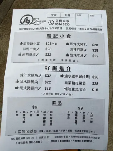 魔記車仔麵檔 (长沙湾) 网址: https://s.openrice.com/QrLS0SBOF00 地址: 香港長沙灣福榮街218號美居中心地下50號舖 电话: +852 55443530