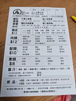 今日就同朋友去左魔记车仔面档餐厅好有港式风情,主打4款车仔面套餐,有齐肉类、配类、素类既𩠌; 仲有多款小食选择牛魔王套餐有齐牛丸、牛腩、牛柏叶、牛孖筋、生菜; 份量超多,牛孖筋充满胶质,牛腩大旧软腍,炆到好入味,另加腩汁,油面索满汤汁,够晒原汁原味唐三藏套餐米线包括豆卜、枝竹、海带、甜萝卜、紫菜、金菇菜等素菜,足料清甜炸鸡中翼鸡翼炸到外脆内嫩,咸香入味,咬落juicy又香口酸辣木耳木耳爽脆,面头淋上酸辣酱汁,好开胃