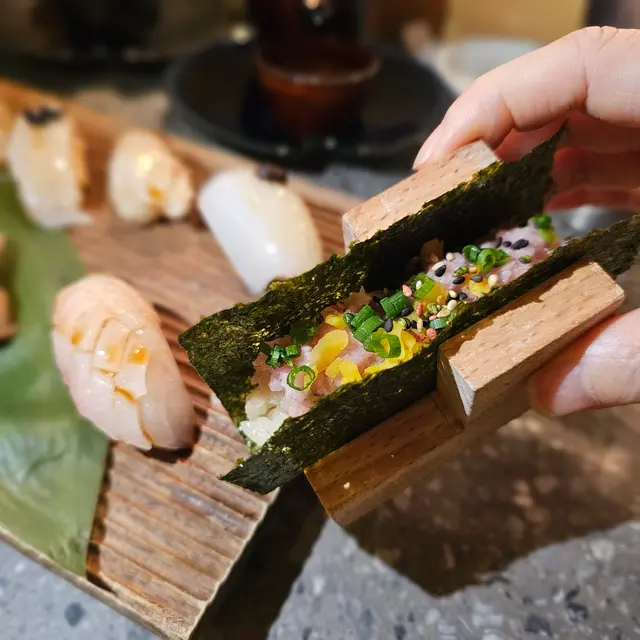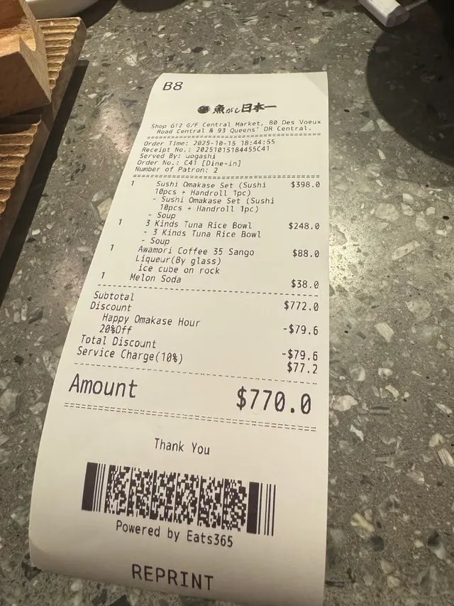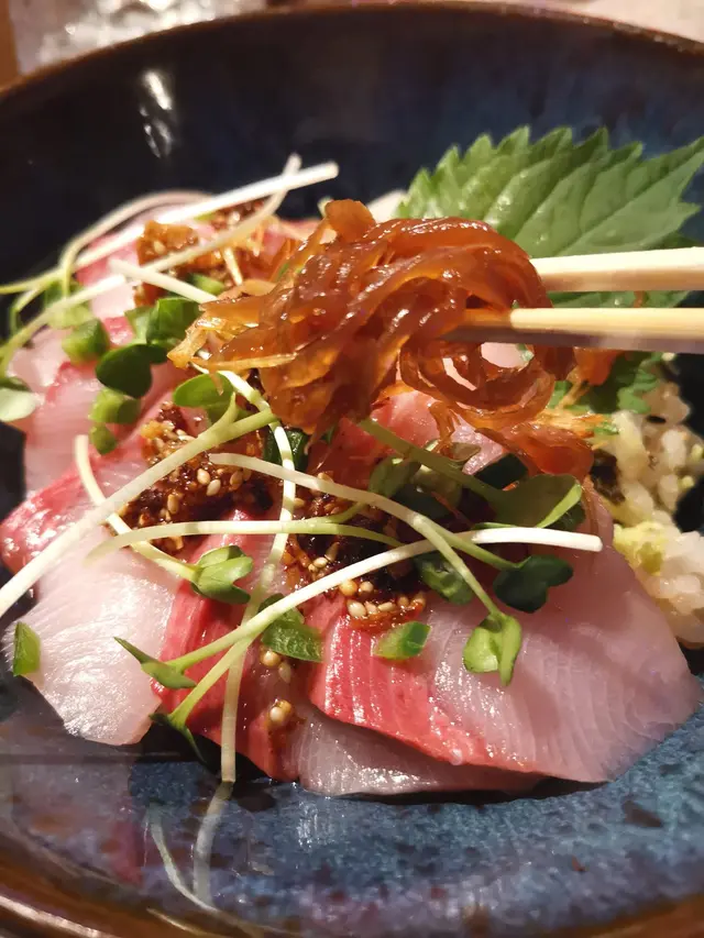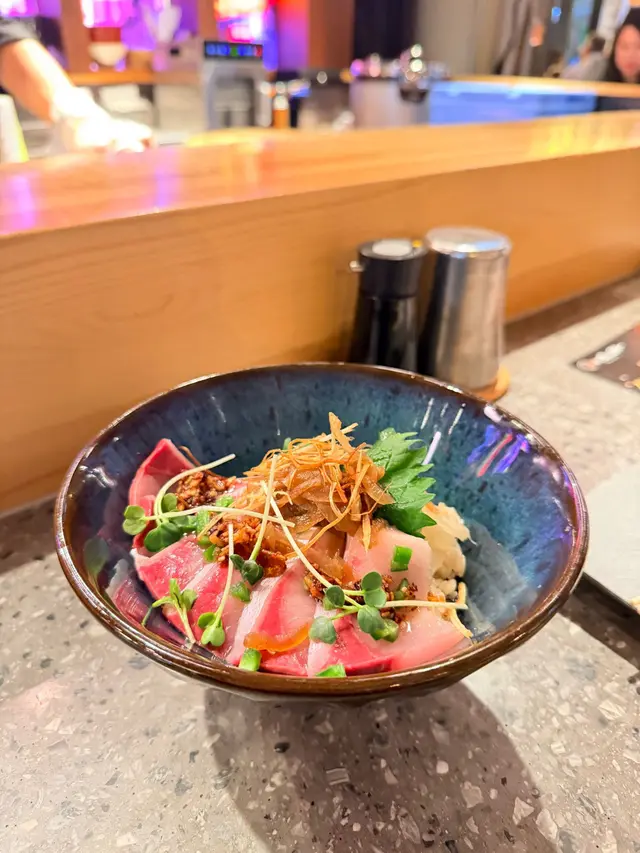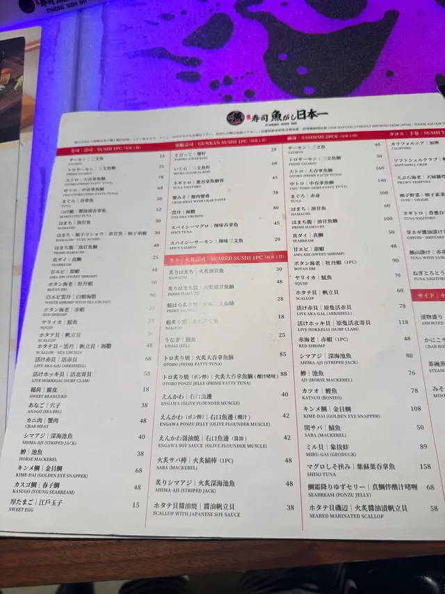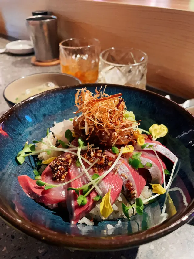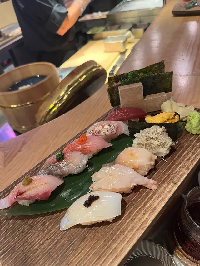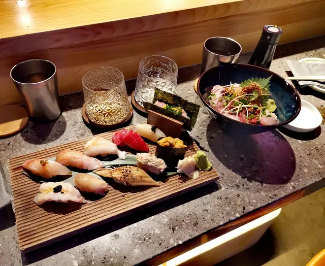 魚がし日本一,位於活化後嘅中環街市,主打日式料理料理吧枱別具特色,配上現代化的日式佈置旁邊仲有酒櫃,放有酒精飲品、清酒等是中環街市中享受日式美食美酒的好選擇🍶🍣廚師特選壽司十貫壽司加上手卷,手工精緻、用料新鮮金目鯛、油甘魚、池魚、真鯛、吞拿魚魷魚、赤蝦、帆立貝、蟹肉蟹膏、海膽🍣蔥吞拿魚蓉手卷,以日式木架盛載綿密的吞拿魚蓉直擊味蕾,鮮味充滿口腔🐟金目鯛肉質柔軟而鮮味🐟拖羅入口即融,爆發油脂感與鮮味🍤赤蝦口感軟綿,鮮甜濃郁🦑魷魚滑溜而煙韌,口感細膩,令人驚喜🦀蟹肉蟹膏味道香濃,帶絲絲蟹肉口感壽司以黑松露、柚子胡椒等調味點綴,味道層次更為豐富🍱海鰻魚丼🐍炙燒穴子海鰻,表面帶點炙燒焦香,底部依然細嫩搭上絲絲紫菜與片片菊花花瓣,口感清澈淡雅玉子燒蛋味滿滿,食落厚實有層次🍲茶漬麵豉湯麵豉味道濃厚,帶有點點芝麻風味 令人意想不到碗中竟有鯛魚片,入口鮮味軟滑🐟底部還有泡飯,鯛魚片與泡飯配襯出麵豉湯的味美🍸Suntory 蜂蜜蘋果酒🍎入口順滑不太刺激令人享受的蘋果風味之間帶有蜂蜜餘韻🍯伴隨微微的酒精感,令人陶醉🍹水蜜桃乳酸水蜜桃搭上乳酸,味道甜美而清新入口氣泡感十足,在夏日中帶來清涼感覺總結而言,魚がし日本一用料新鮮,料理方式出眾,酒類繁多是一間高質而值得一試的日式料理😋…查看更多