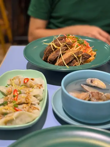 Visited this Michelin Bib Gourmand resto in Fortress Hill with my family for lunch, since I got a HKD5 coupon from my colleague..Our meal started with the free Imitation Shark's Fin Soup provided by the resto. The soup was quite rich with a gelatinous texture. My dad ordered the Pork Cutlet with Fish Noodles in Cheesy Dressing. The thickly sliced pork cutlet arrived piping hot, with an extremely crispy skin and a tender, succulent interior. Dipping it with the cheesy dressing elevated its savoury. My mom ordered the Cilantro Lover. This bowl of noodles came with two dumplings and a generous amount of cilantro, emitting an intense cilantro smell. Both my sis and I chose My Noodles My Choice with Three Toppings. My sis selected Fishy Spring Roll, Cuttlefish Ball and Duck Blood as toppings, Rice Noodles as the noodle base, and Snow White Fish Soup as the soup base. I chose Cuttlefish Spring Roll, Fish Dumplings and Duck Blood as toppings, Fishotto as the noodle base, and Clear Dashi Soup as the soup base. The Fishotto, made from fish, resembled rice grains, giving a sensation similar to soaked rice. The broth was clear and flavourful. The Cuttlefish Spring Roll was elastic, while the fish dumplings were juicy. .The resto, with a turquoise blue colour scheme, brings to mind the sea. Although not very large, the seating is generally comfy.…查看更多