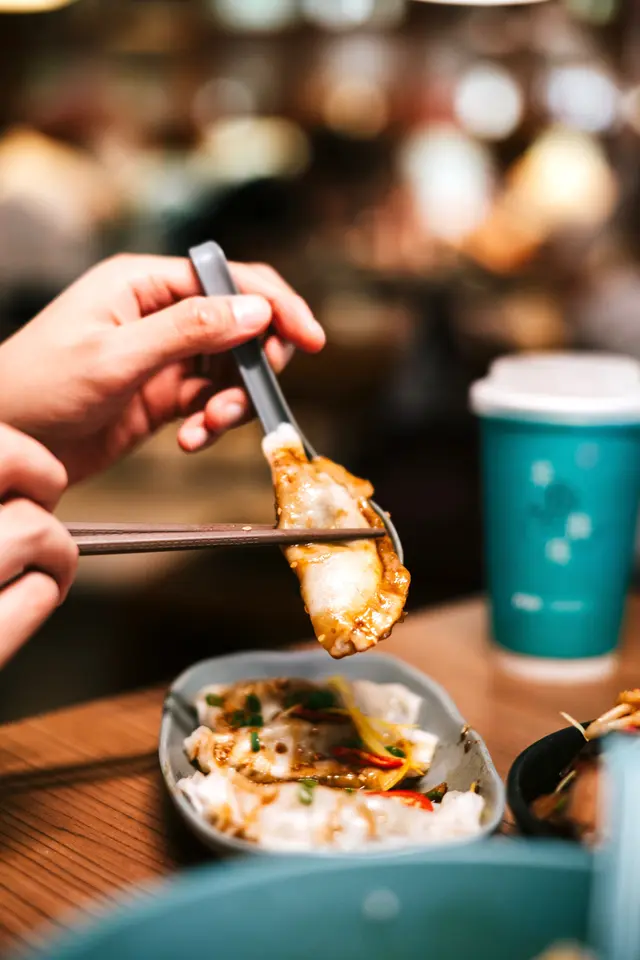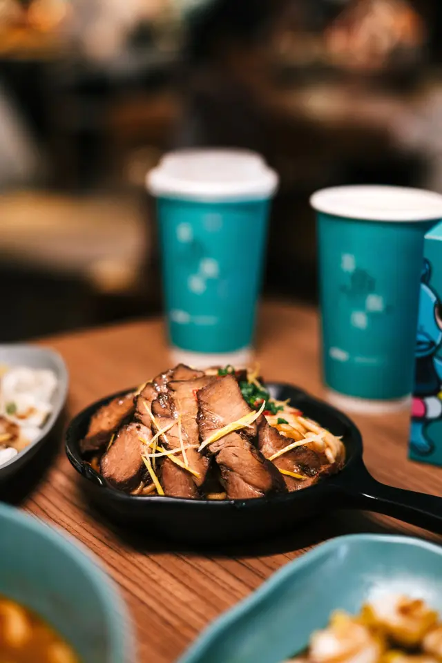 🍊傳統叉燒玩新意!用陳皮檸檬醬代替麥芽糖,酸甜平衡得剛剛好。爽彈魚麵炒得鑊氣十足,仲有脆脆魚皮增加口感,創意同懷舊完美融合👨🍳.4️⃣「爽辣萵筍豬肉魚皮餃子」