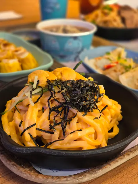 🇯🇵選用北海道海膽,creamy得嚟帶微微甘甜。滑溜魚烏冬蘸滿海膽醬汁,加埋三文魚籽爆破口感,海洋鮮味大爆發🌊 海膽份量超大方,每啖都超滿足😌3️⃣「陳皮檸檬叉燒炒魚麵」