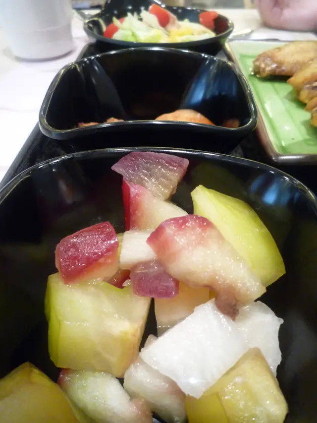 午餐都係在沙田搞掂.今日行經呢間餐廳, 又未食過, 門口姐姐招呼又ok, 見擺出黎的野食又像ok, 又有位, 唔等了, 進內坐下.兩朋友都係叫海南雞飯, 我自己覺得都係一般; 所以叫了看似幾香口的咖哩魚飯.個set都幾得意, 有一兜仔沙律, 上有千島醬的; 都幾新鮮;另有半碌春卷, 都幾脆; 個魚有粉炸過才淋咖哩汁上去的; 的粉略厚, 令到魚"素"了好多咖哩汁, 咖哩汁係花生味重果類, 唔辣的. 撈飯一般.另有一小兜diced 了的生果, ok 啦.跟飲品的, 我叫了熱啡; 好像太多奶了, 自己落會好d.朋友說雞ok 啦. 都有三色醬既. 油飯一般.六十幾一個午餐, ok 啦.回家看到此餐廳的評都係麻麻, 但我覺得都頂得住既. 查看更多