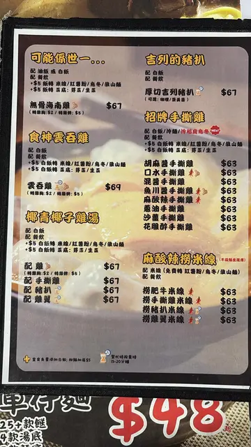又到返工嘅lunch时间🤣, 同事带我到九龙湾工厂区食个云吞鸡嘅饭堂,我哋特登早啲出去食,因为佢话约莫12:30至1:00点左右就已经好多人, 我哋去到嘅时候都人头涌涌… 好嘈,证明间嘢有料到😅可能系旧式工厂区地方都好大,职员安排咗个位之后,我就叫咗个海南鸡饭同事就叫咗个云吞鸡米粉,见到餐牌都系七八十蚊左右la , 落完order之后,5分钟到就有嘢食,海南鸡饭就正正常常啦,但啲鸡都算几滑,另外佢个云吞鸡面个汤几好饮不过不失…. 见到咁多人嚟食都知道CP值几高,可以一试!不过同我喺九龙湾工作嘅地方都颇为远,同埋呢排夏天天气热都要间唔中先嚟得,临走时真系见到排队排到出门口,所以一定要早少少嚟食先得㗎啦⋯⋯