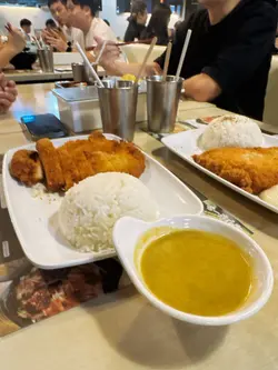 呢排成日OT,终于揾到个lunch time同同事去九龙湾工业区觅食~上到金汉工业大厦1楼,估唔到有间咁隐世嘅小店「鱼川居」,环境似日本居酒屋,暗暗哋灯光加木系枱凳,坐低即刻有种逃离烦嚣嘅感觉,好chill啊!叫咗佢哋嘅「吉猪」同「世一海南鸡」,个吉猪真系不得了~块猪扒大过我块面!炸得金黄香脆,咬落去「咔嚓」一声,肉质仲好juicy,点埋蛋黄酱同咖哩汁,送白饭一流,食到舔舔脷~海南鸡都唔输蚀,鸡肉滑溜到呢,油饭香喷喷,每啖都系享受。仲试咗碗云吞鸡汤,清甜暖胃,啱晒我呢啲养生少女~整体味道偏轻盈,小甜少冰,食完唔会腻,好满足!价钱亲民,份量足,虽然位置隐蔽,但绝对值得专登嚟打卡。下次OT闷闷哋,一定会再encore!