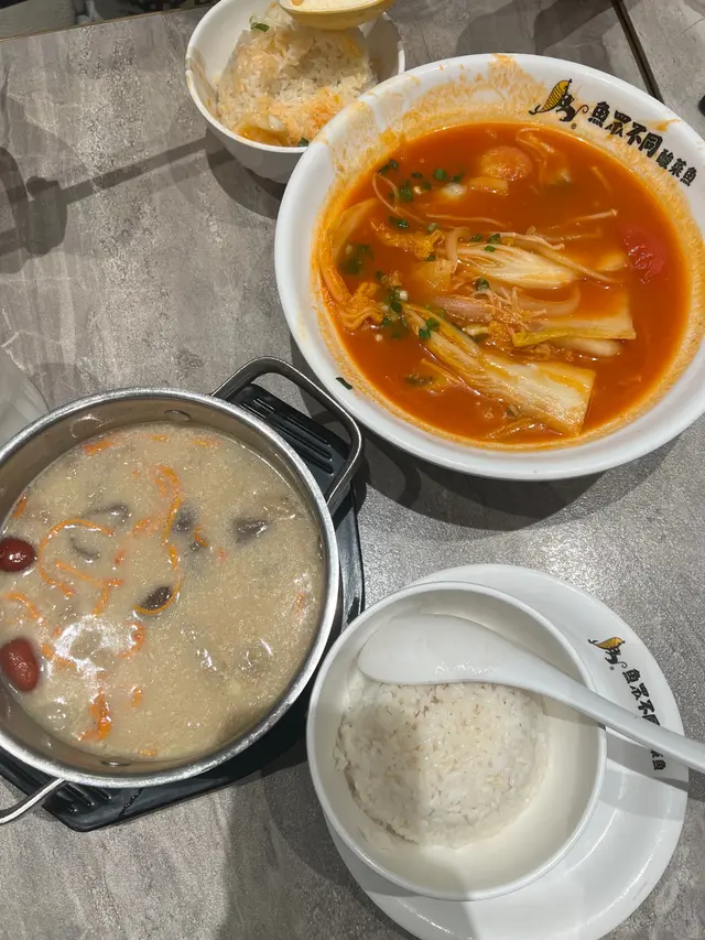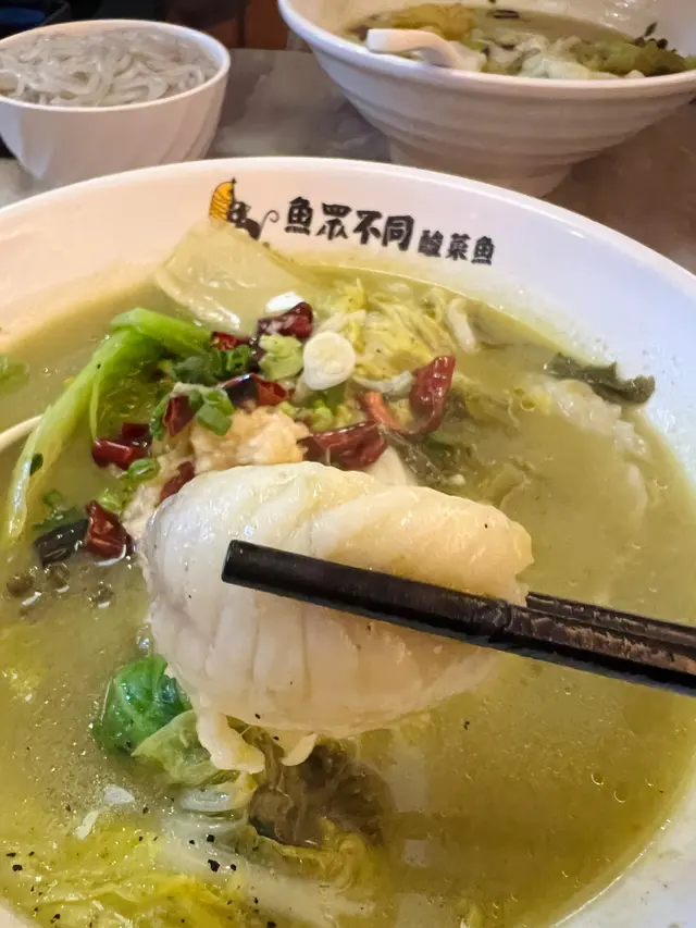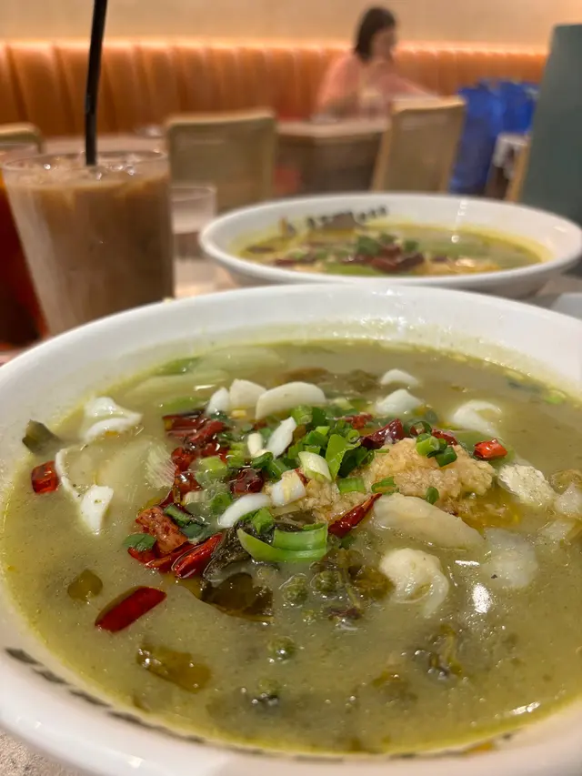 人年紀大咗,耐唔耐都會想飲湯或者食啲好暖胃嘅嘢今日經過呢間餐廳見到門口有賣胡椒雞肚湯米線就就覺得非常吸引要入去試一試😍同朋友一齊去食,本來諗住嗌個酸菜魚,話晒個餐廳個名字都係叫酸菜魚餐廳,但係朋友就嗌咗呢個蕃茄湯鱸魚配娃娃菜1️⃣胡椒豬肚湯個湯底好夠胡椒味,但係感覺應該係加咗罐頭忌廉湯去溝呢個湯底,所以脂肪含量都唔少唔敢飲晒,豬肚同雞嘅份量唔會特別多餐牌寫明係一人份量我個人就覺得雞得兩三舊就真係唔係好足夠2️⃣蕃茄鱸魚味道唔錯嘅,鱸魚真係新鮮以及嫩滑,一般如果平時喺屋企唔會煮飯嚟呢度食真係可以解決咗你想食魚嘅食慾,加埋酸酸甜甜嘅蕃茄湯底配上飯係非常適合呢個餐廳其實都唔係第一次食,之前都有食過花膠雞湯配飯都係非常唔錯,但一般嚟講我都覺得係肉類嘅份量比較少,除此之外都冇咩其他挑剔gains power: 6/10taste: 8/10…查看更多